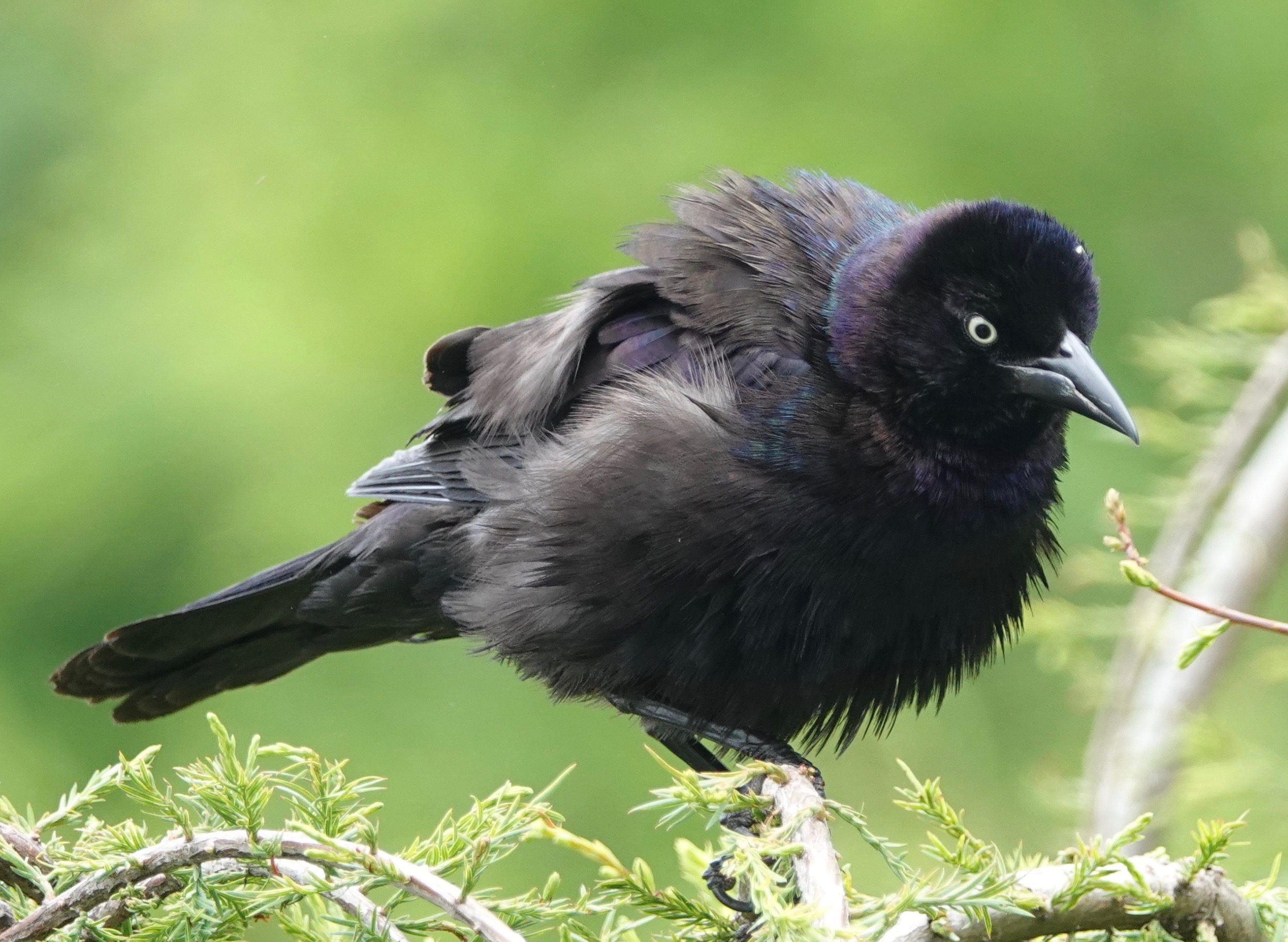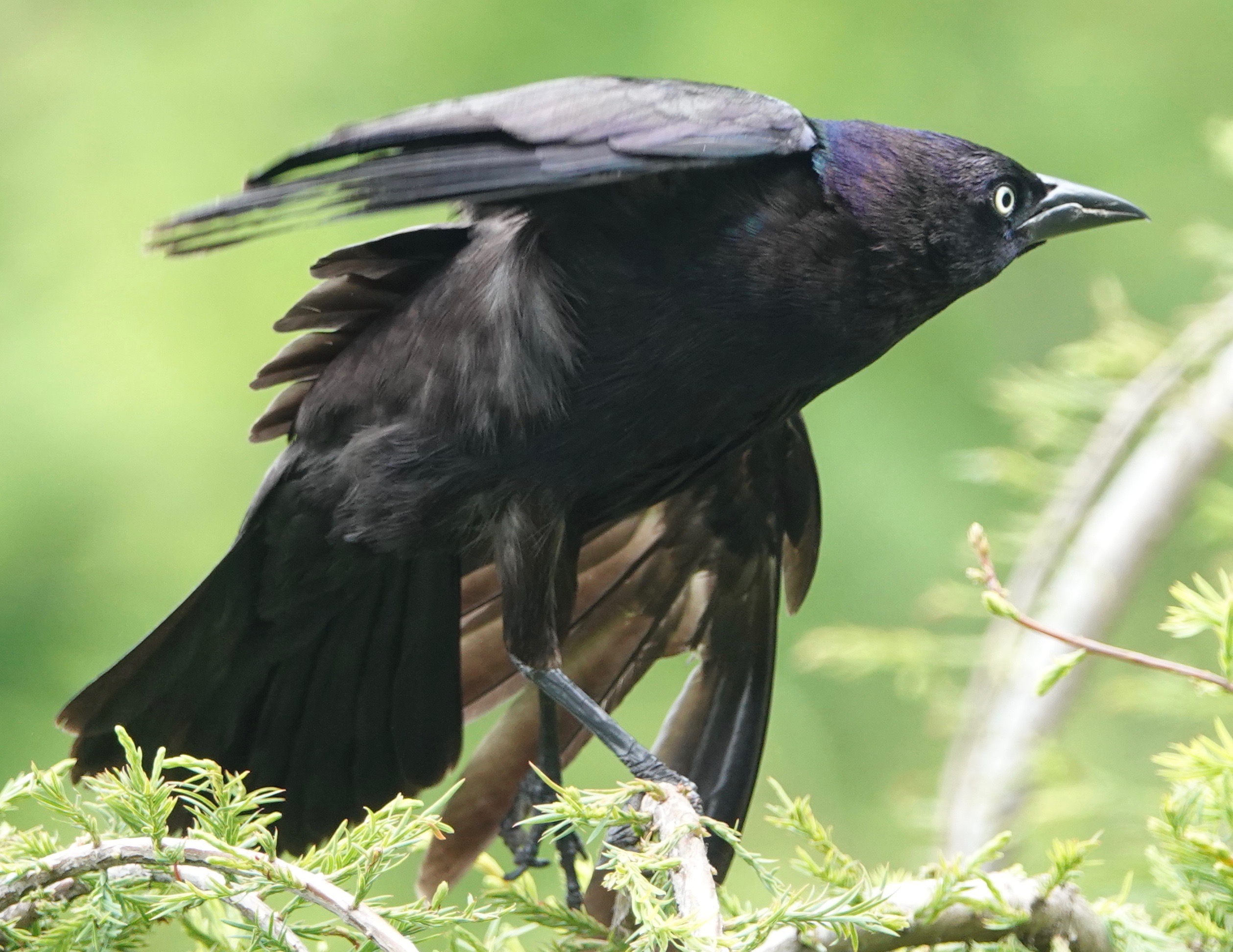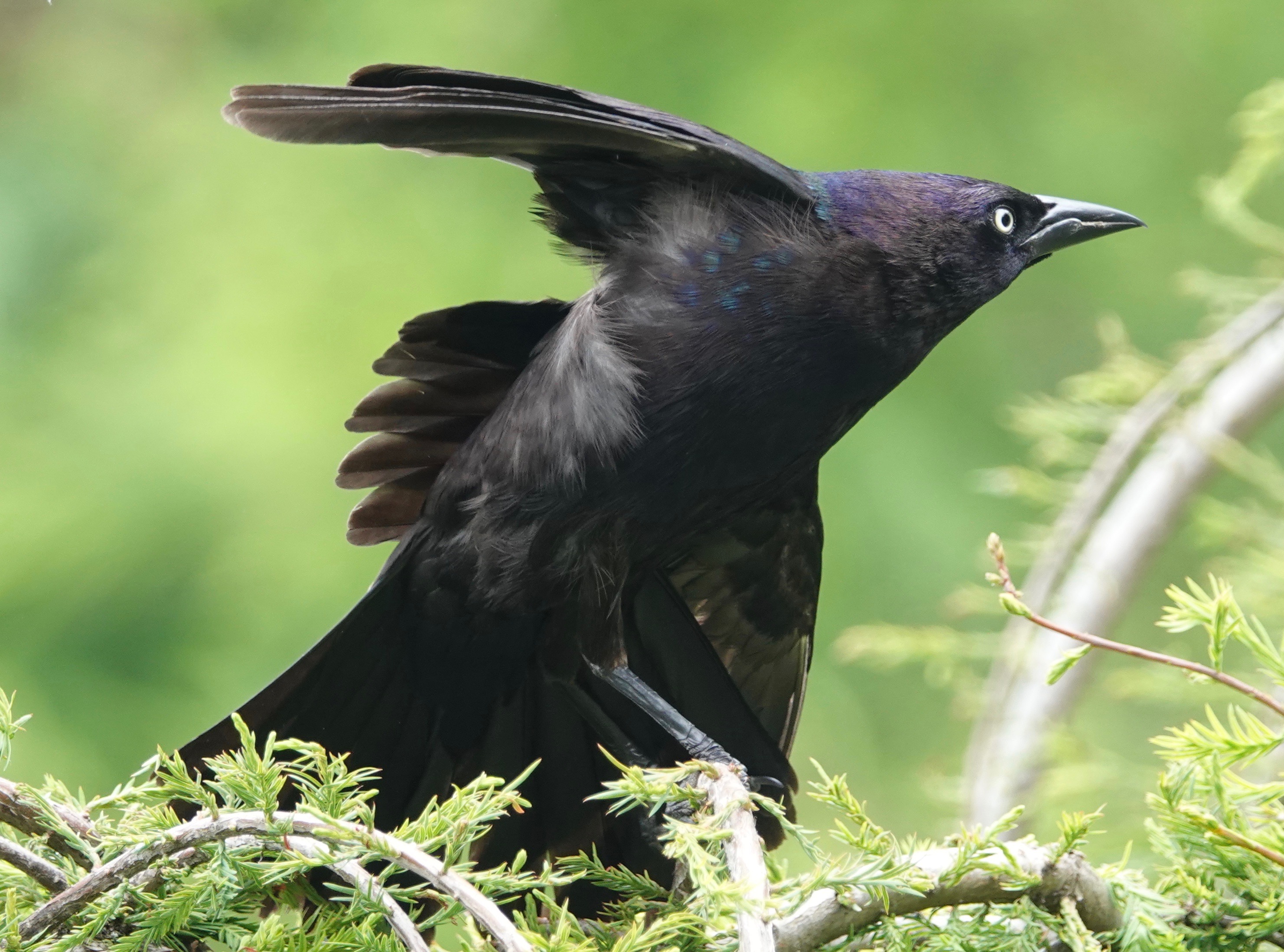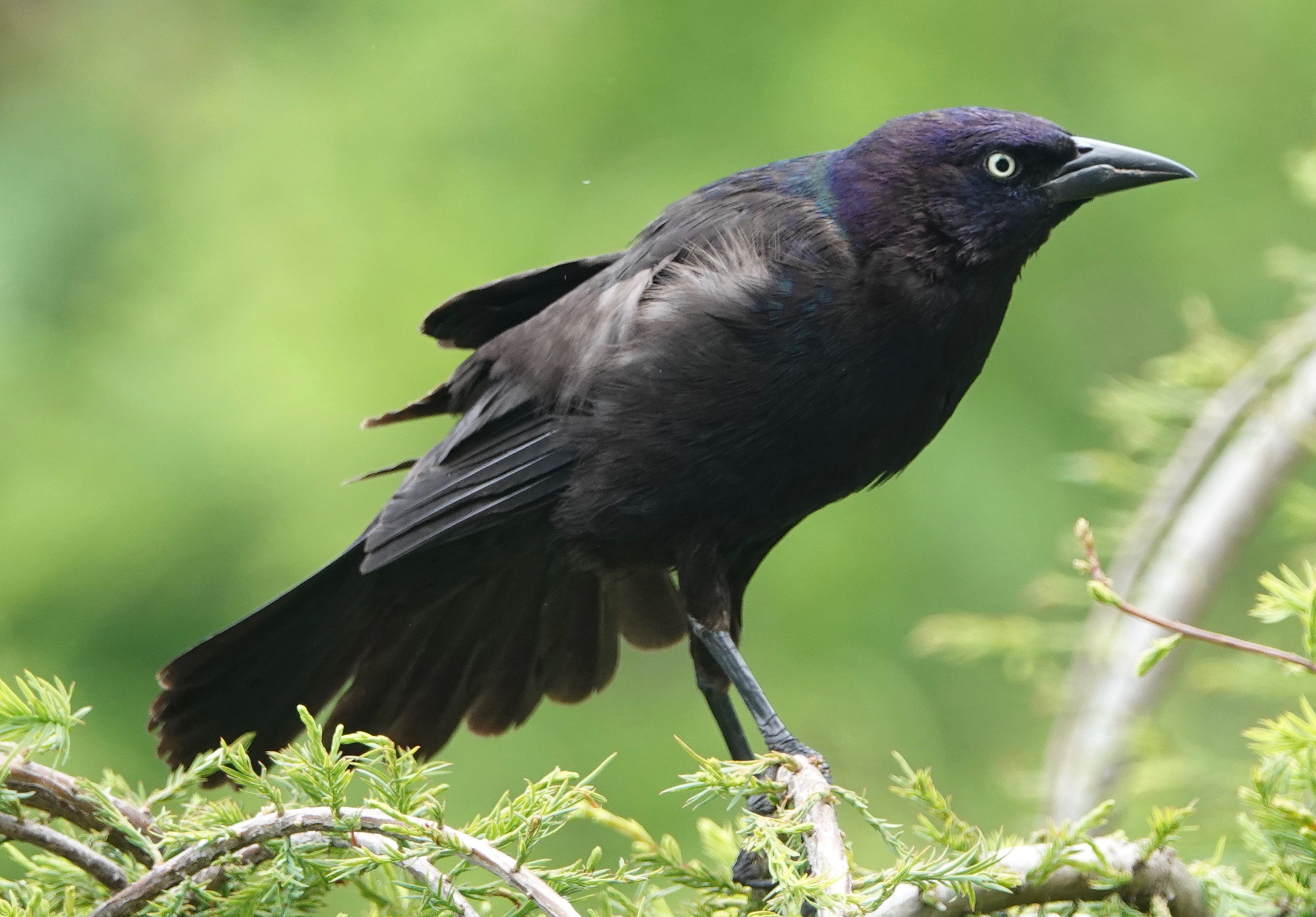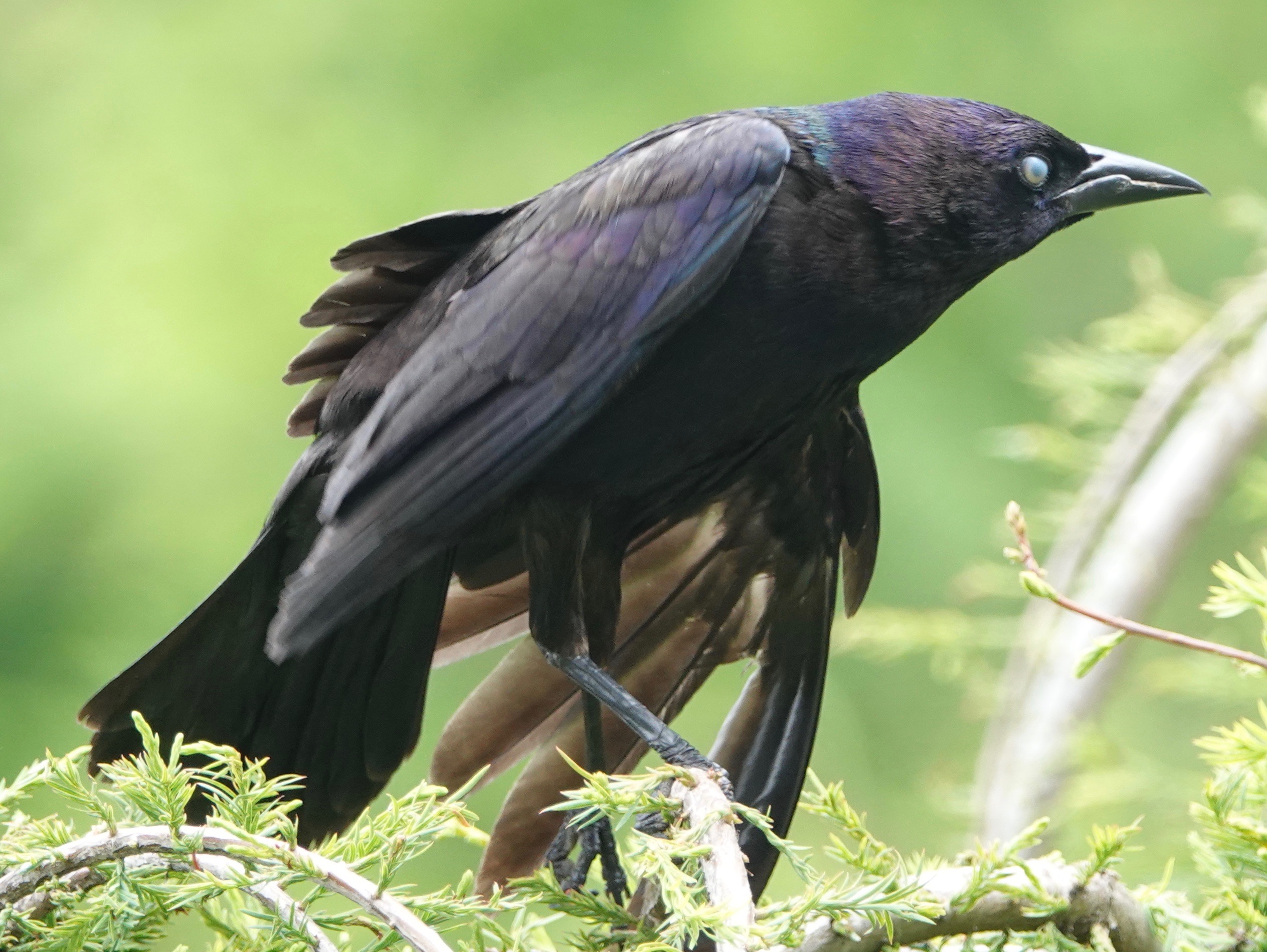 There are usually a few Common Grackle around the Sylvan Water in Green-Wood during the breeding season. At least one of the large pines nearby is a likely nesting place.