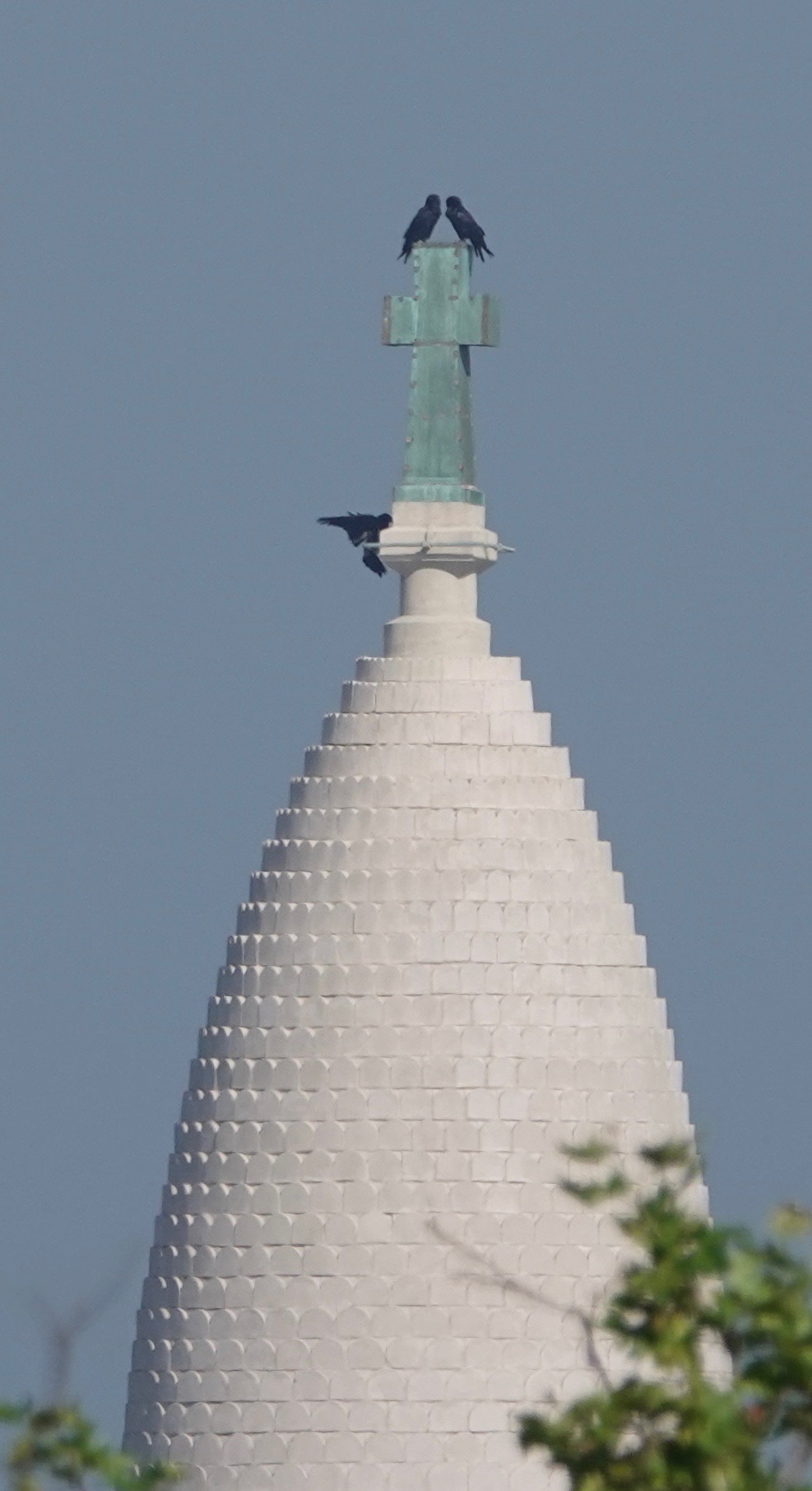 Atop the Temple of Peregrines, three of the four Common Ravens seen last week.
