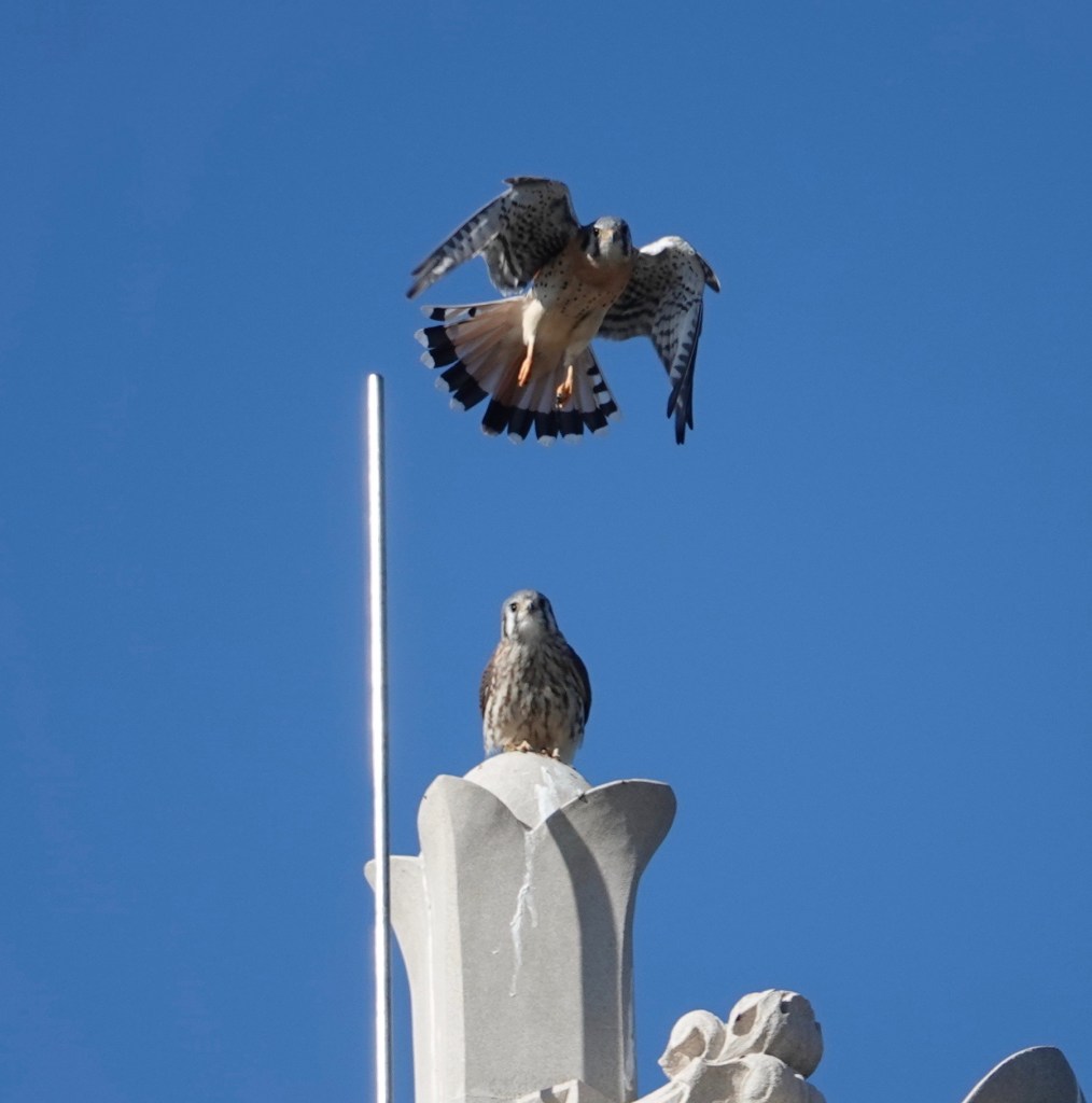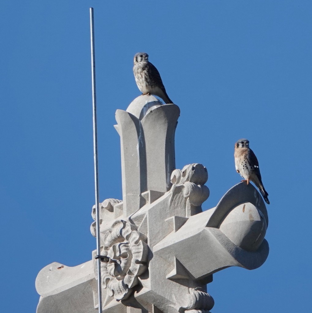 A bolt of lightning absolutely exploded the top off this American Kestrel perch in Green-Wood Cemetery last month. Here’s a remembrance of perches past: