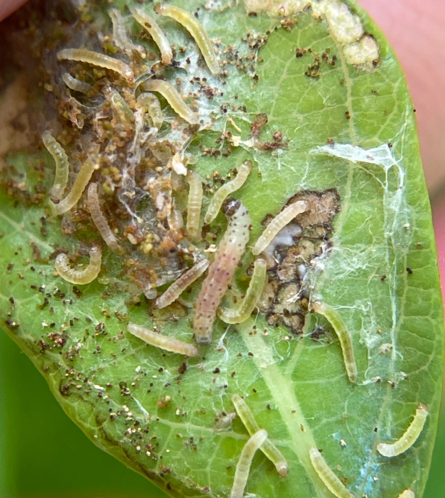 Dogbane Saucrobotys Moth Saucrobotys futilalis larvae on Hemp Dogbane/Apocynum cannabinum