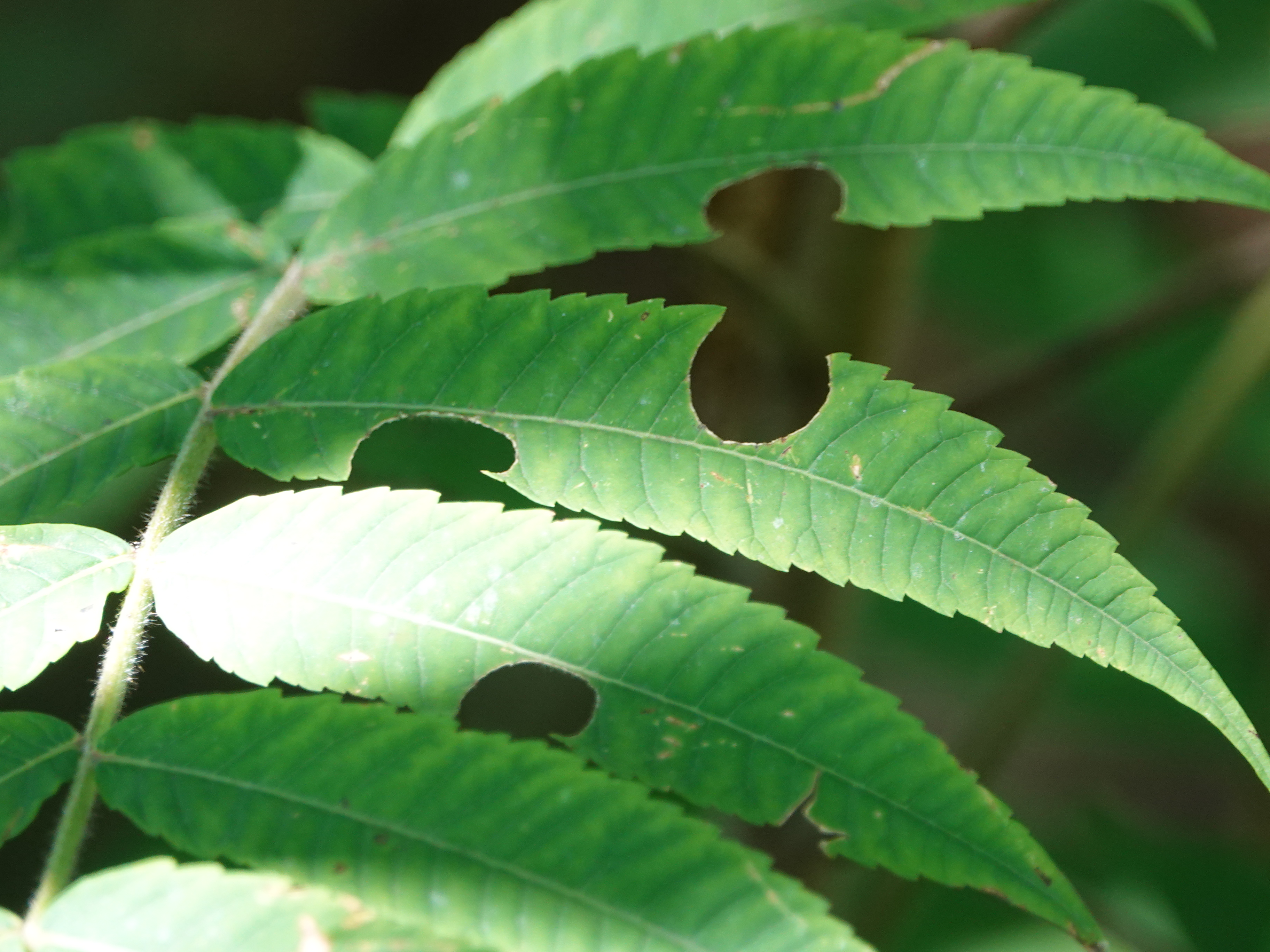Sumac leaflets cut to line nests of leaf-cutter bees.