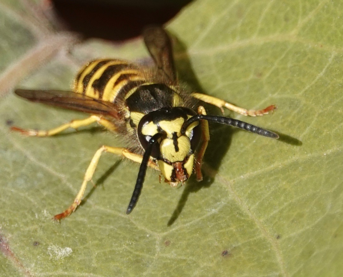 (It’s hard to get a head-on view of living wasps. The image directly above is from November 2021; of the 104 observations of Vespula wasps I have on iNaturalist, this was one of the very few I could use for a comparison.)