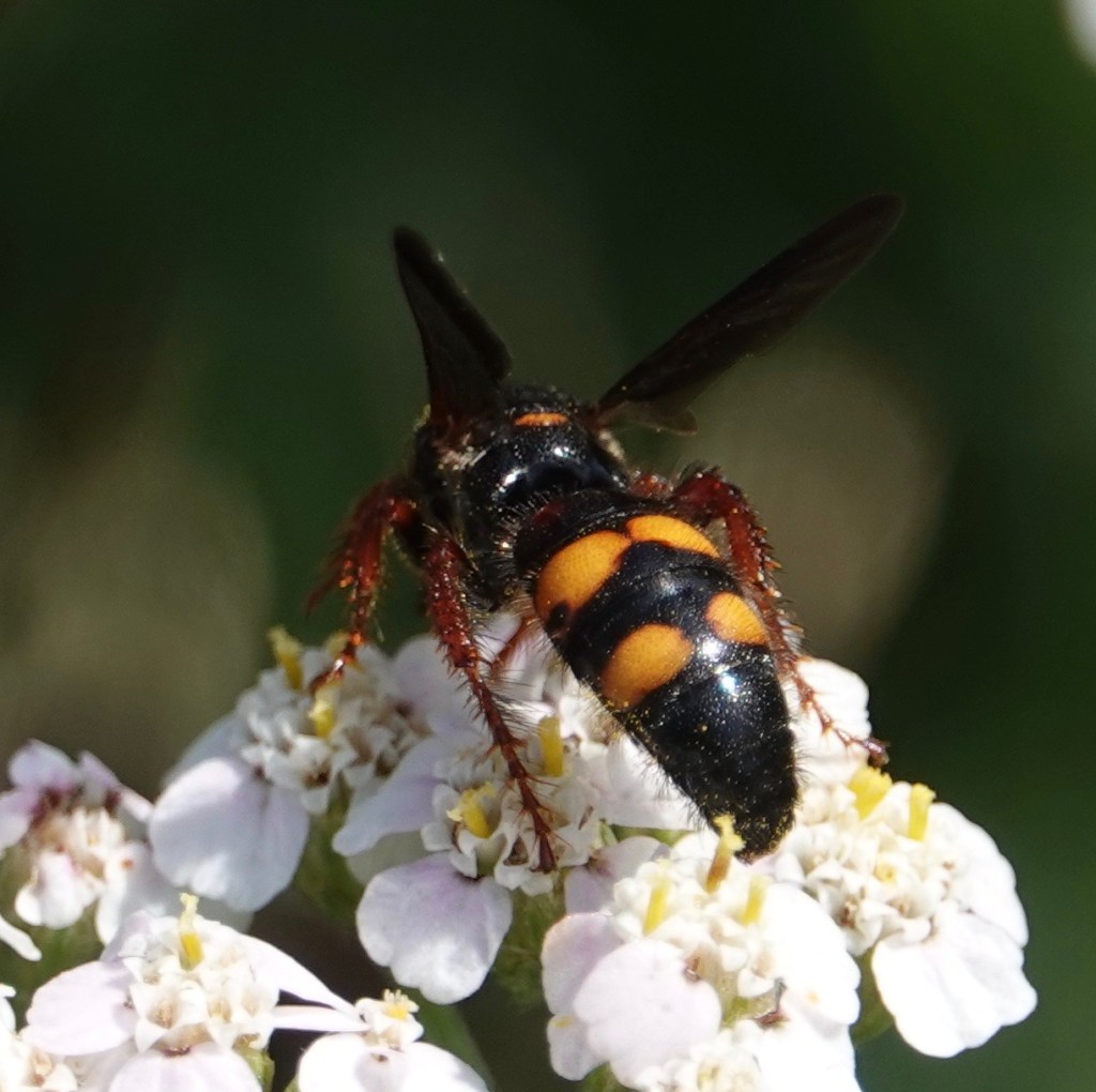 New York City isn’t very rich in Scolliidae. Above is the first Noble Scoliid Wasp/Scolia nobilitata I’ve seen here, spotted last week in Green-Wood. It’s the tenth iNaturalist observation of the species in the city.