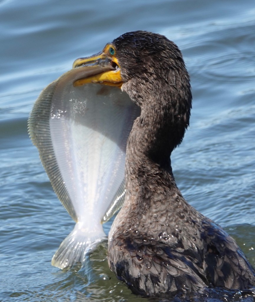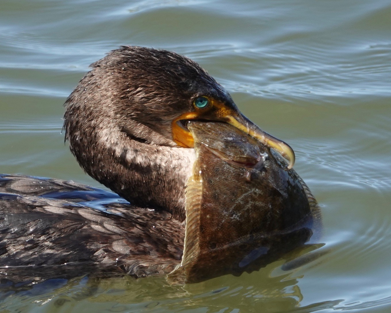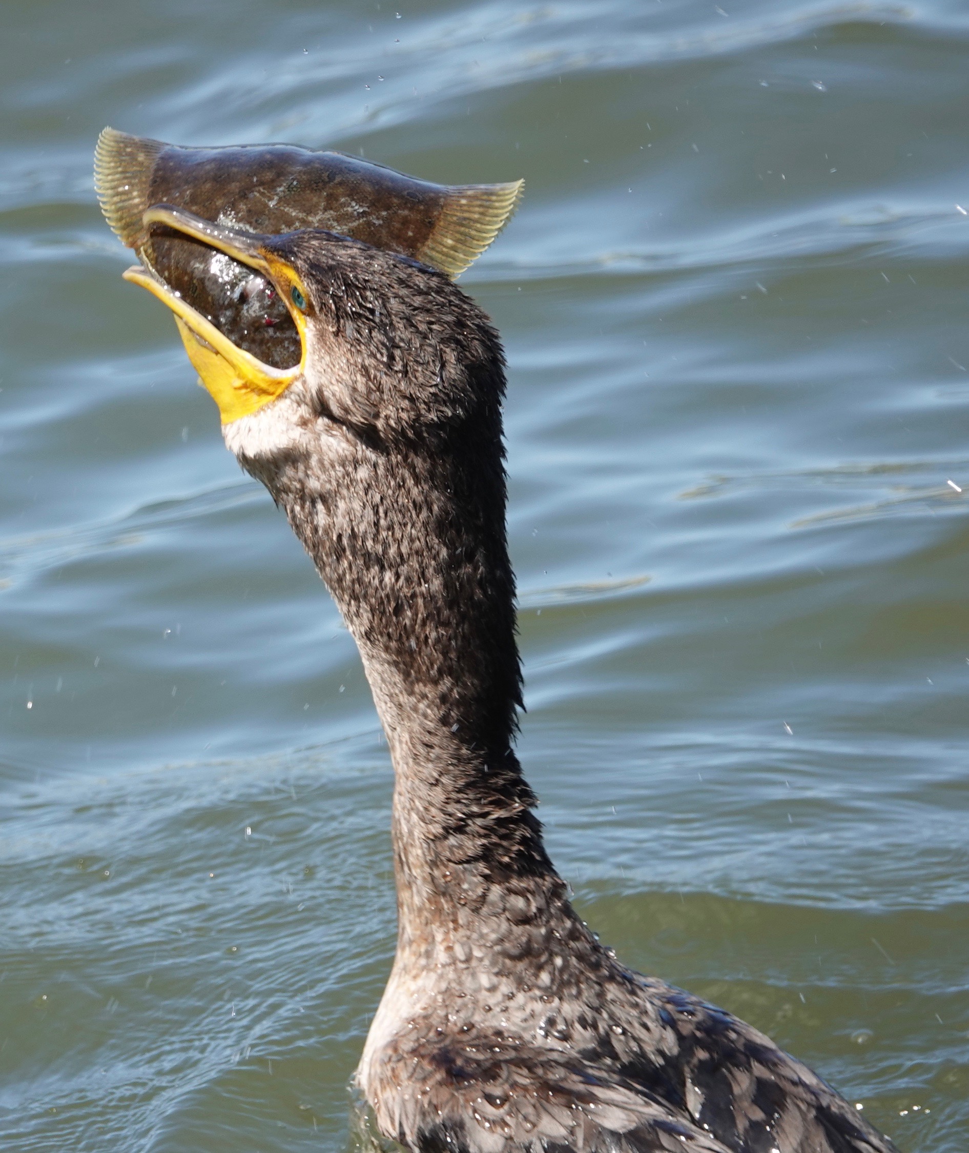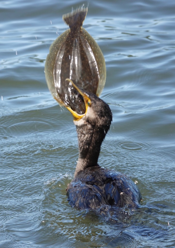 Try as it might, this Double-crested Cormorant could not swallow this Summer Flounder right off the edge of Lower Manhattan.