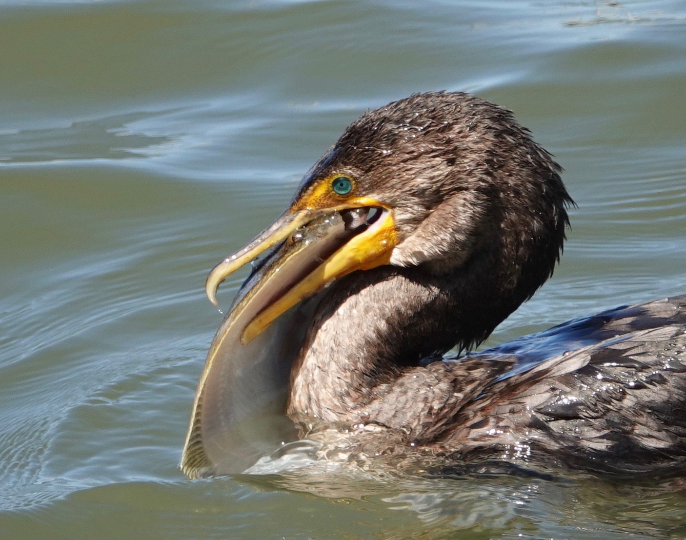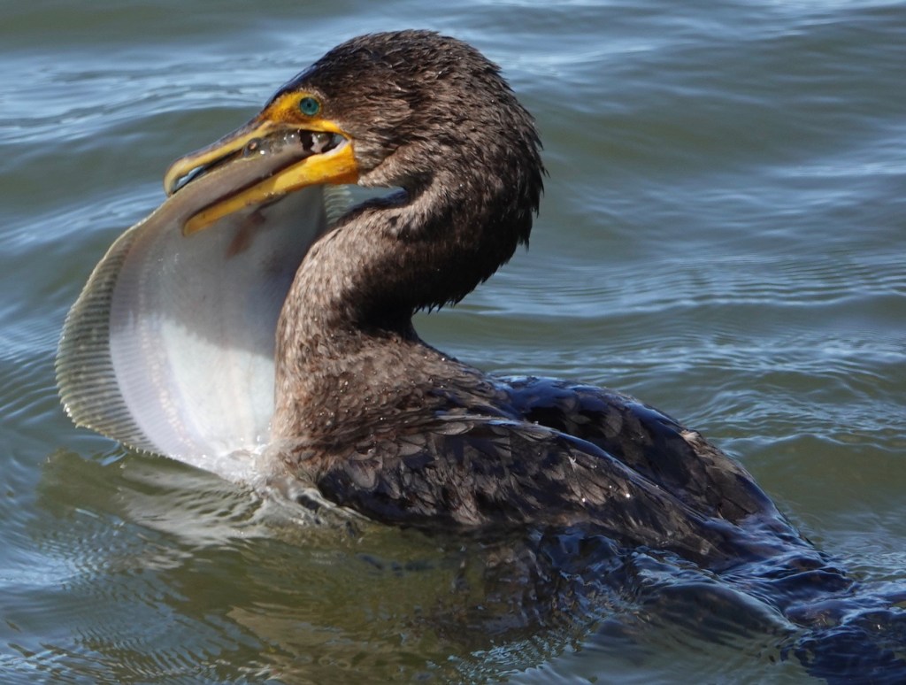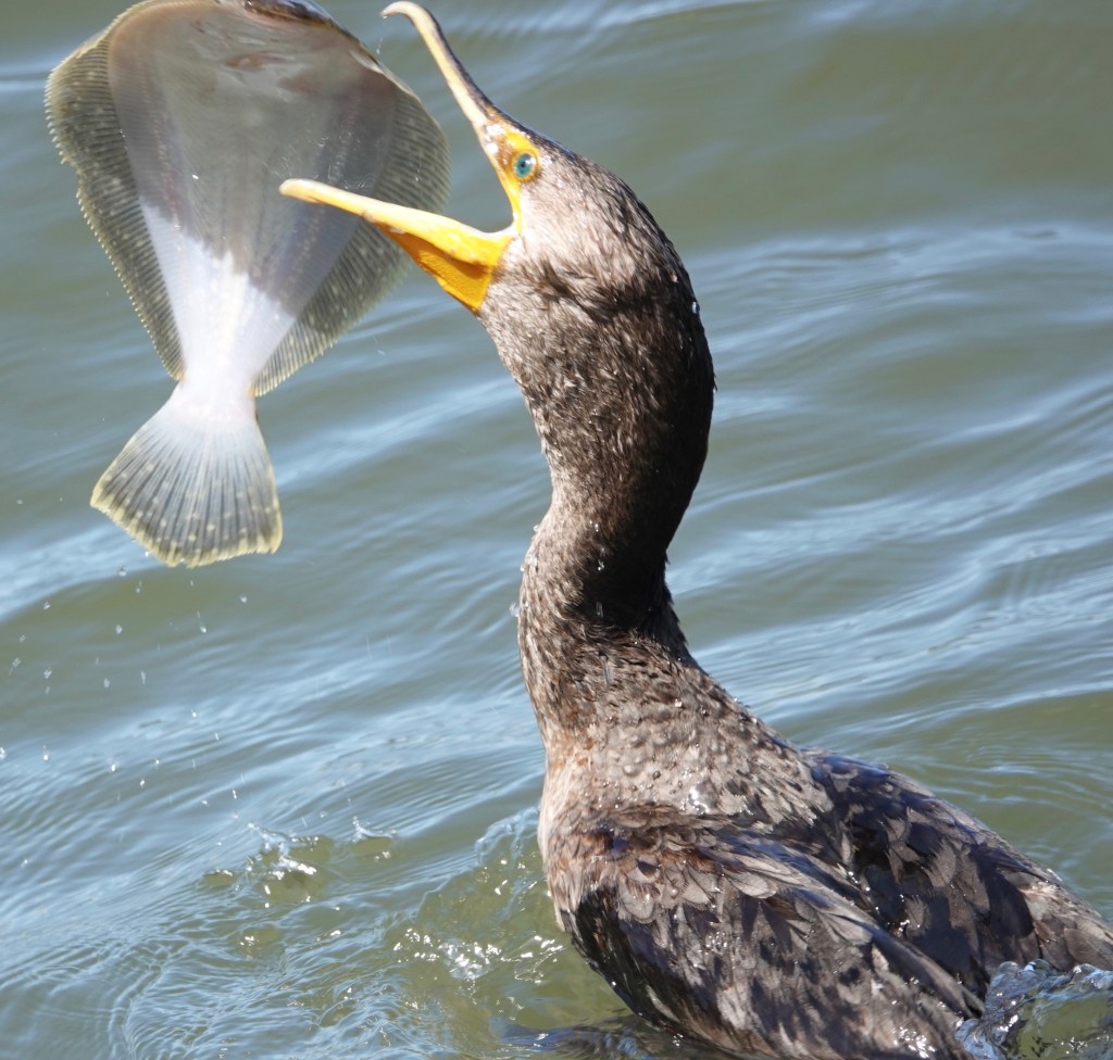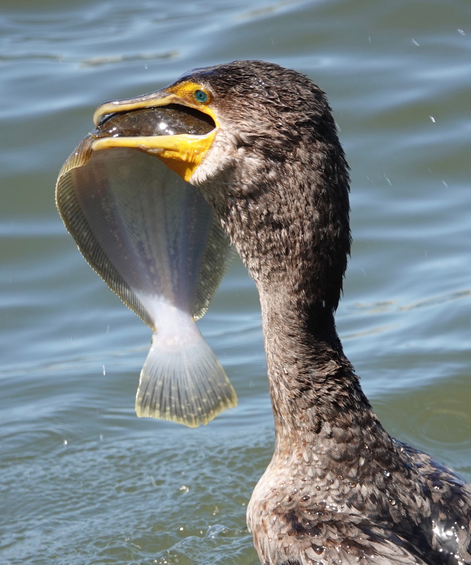 Try as it might, this Double-crested Cormorant could not swallow this Summer Flounder right off the edge of Lower Manhattan.