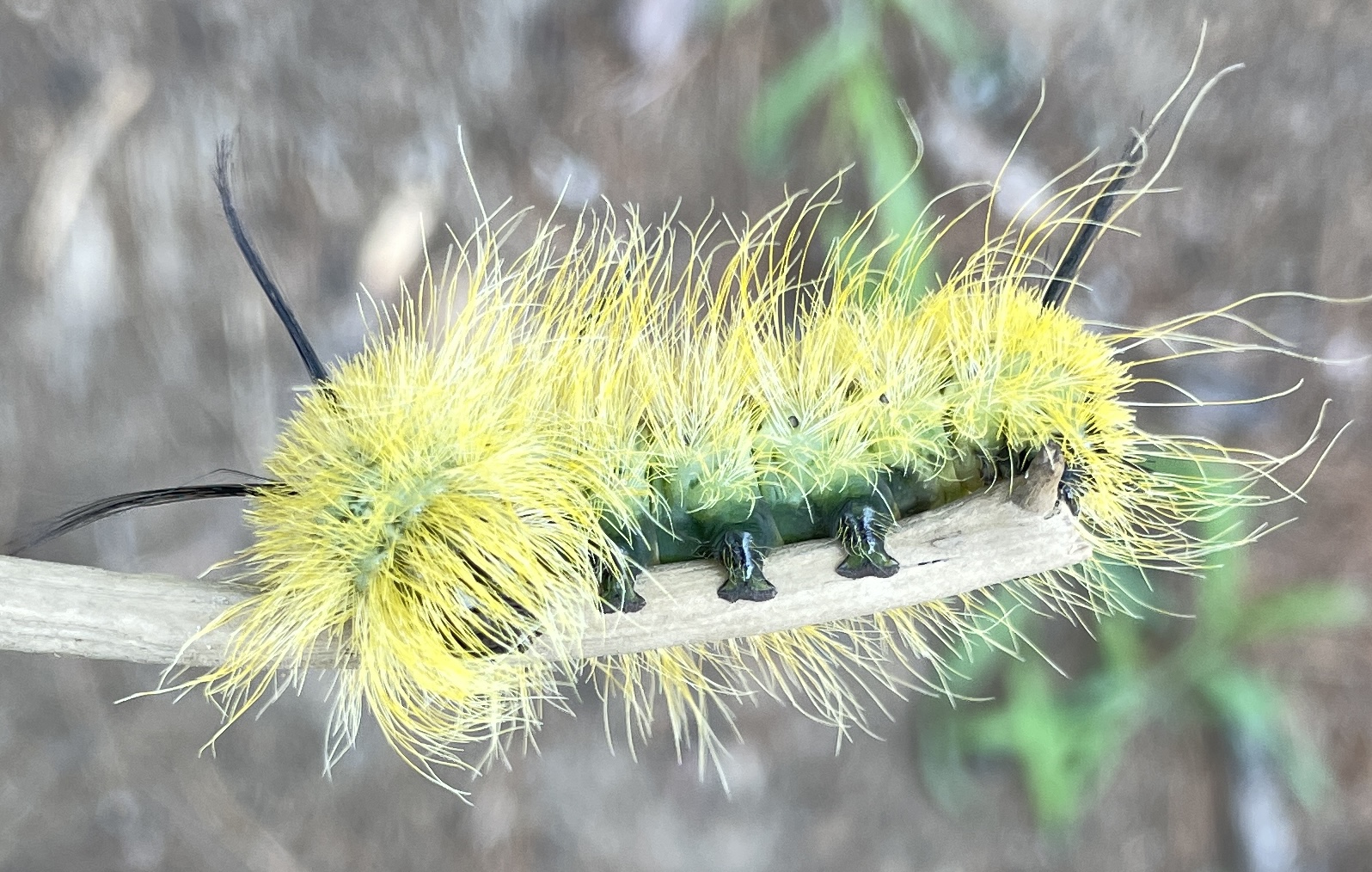 These can be white-haired as well as yellow, but the long black setae are found in all forms. (Anything so extravagantly attired should be expected to be irritable to the skin.)