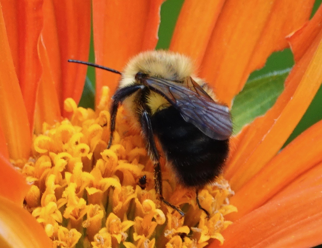 Common Eastern Bumblebee, too. There’s also little black and red beetle in the flowers that I didn’t notice at the time.