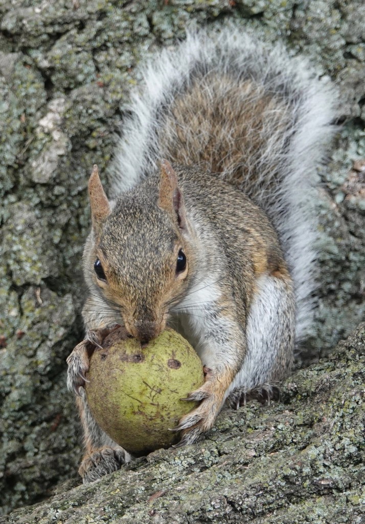 First you have to chew off the coating of this black walnut, then break through the shell.