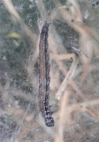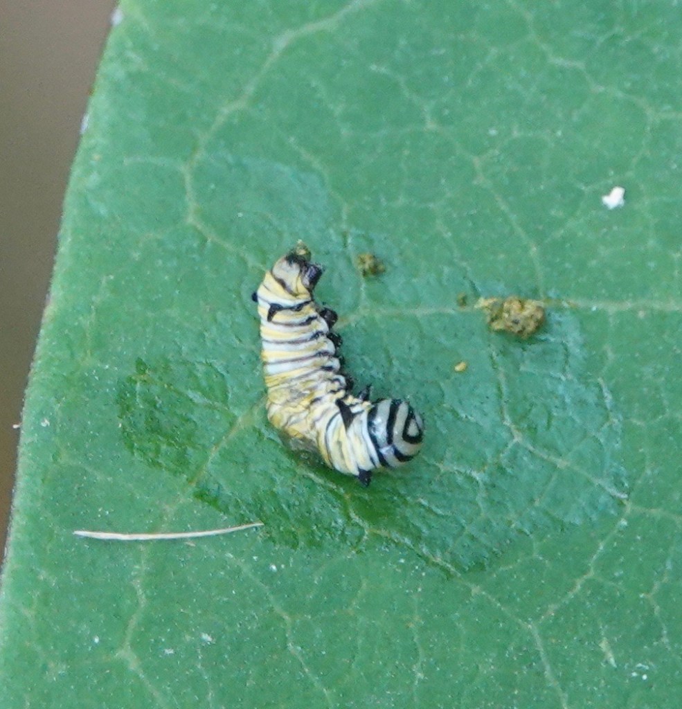 A geometer family caterpillar, I guess, on goldenrod. There are a lot of small difficul-to-ID caterpillars out there. Here’s another one: