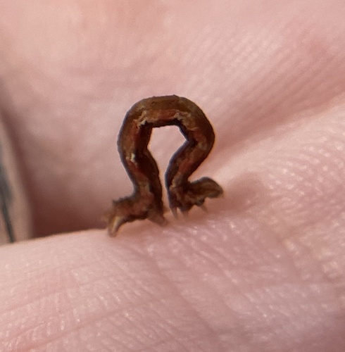 A geometer family caterpillar, I guess, on goldenrod. There are a lot of small difficul-to-ID caterpillars out there. Here’s another one: