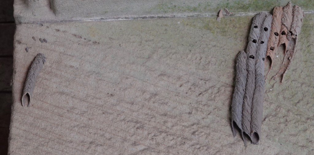 If you look for it, there’s ample evidence of Organ-pipe Mud-dauber/Trypoxylon politum activity.