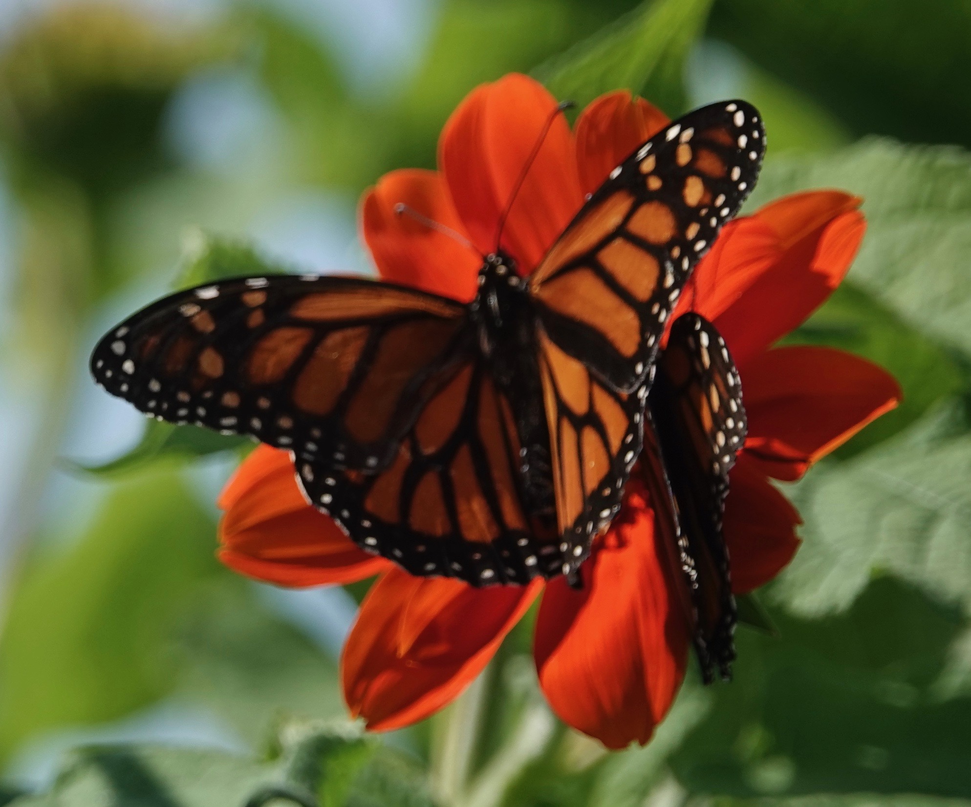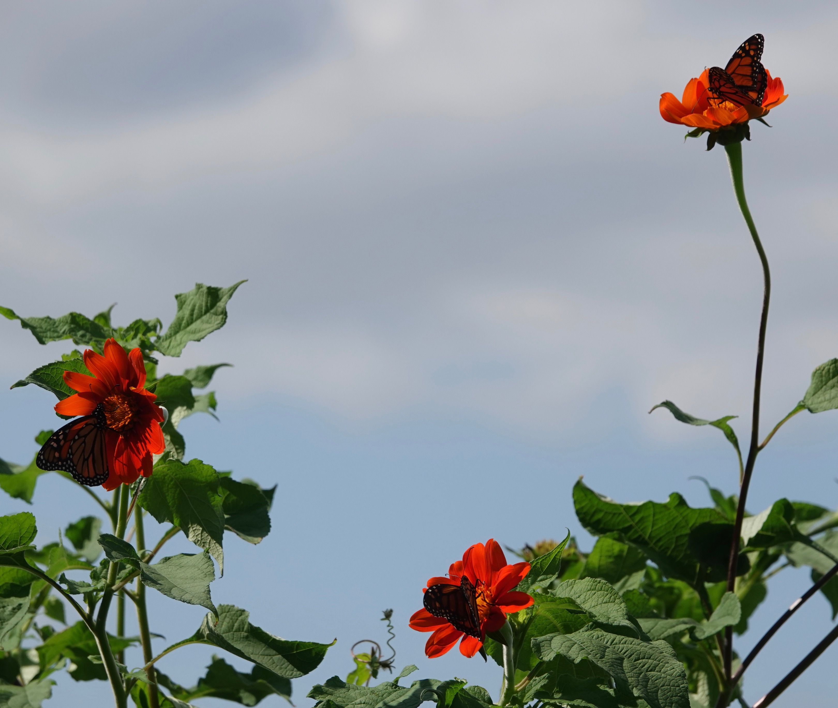 Every picture shows a different individual. Or, in the case of the first image: three individuals, one of whom is also seen with another Monarch in the second picture. So, there were four on those Mexican Sunflowers.