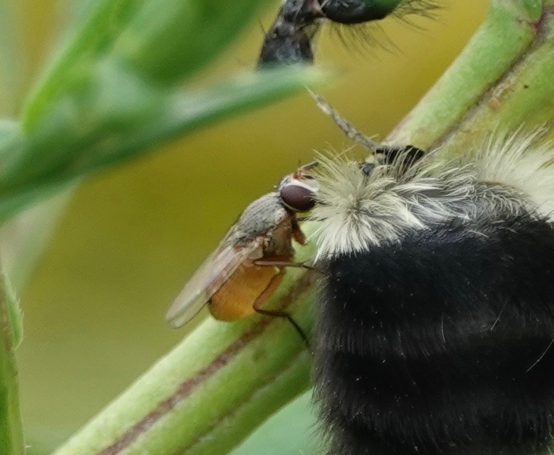 I don’t know if one of Saturday’s mantises got this bumble bee, but it isn’t like them to leave half of one hanging around.