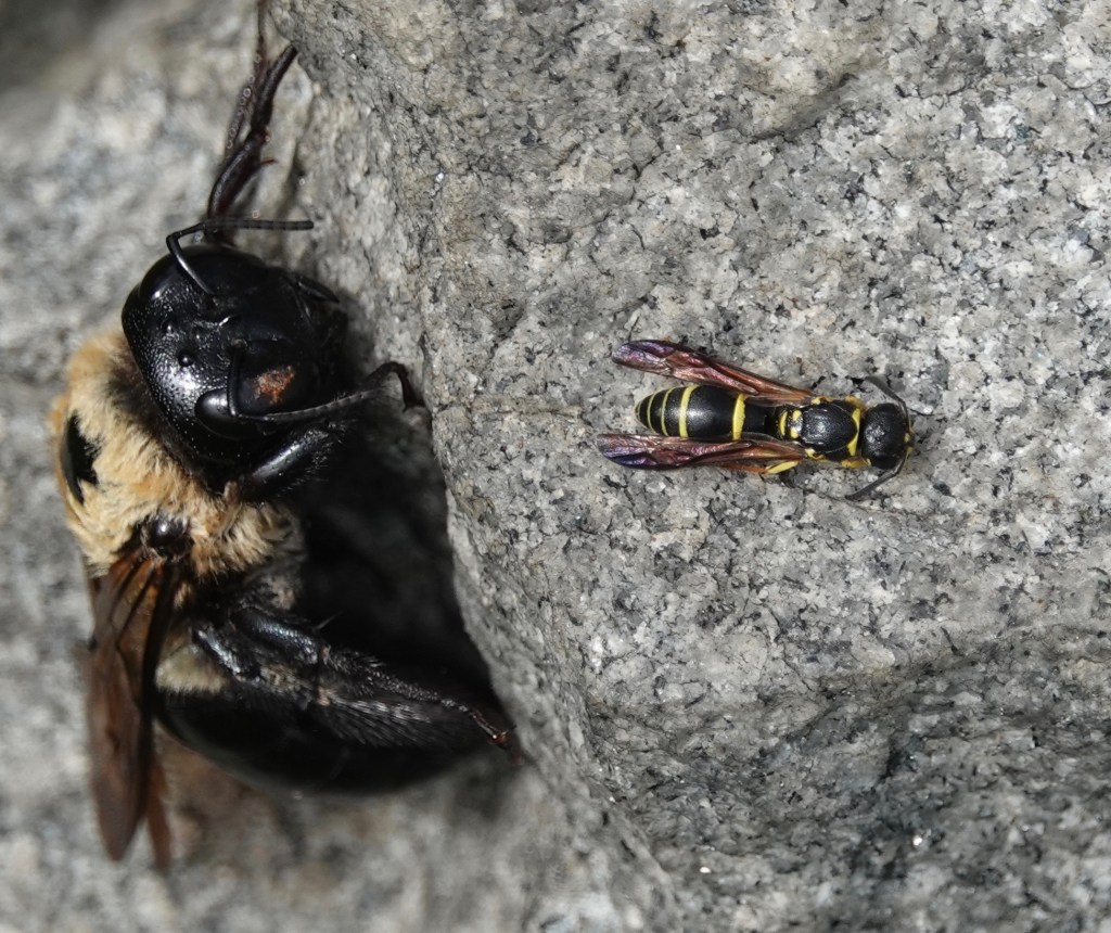 Eastern Carpenter Bee: one of our biggest bees. Bramble Mason Wasp: one of our a medium-sized wasps.