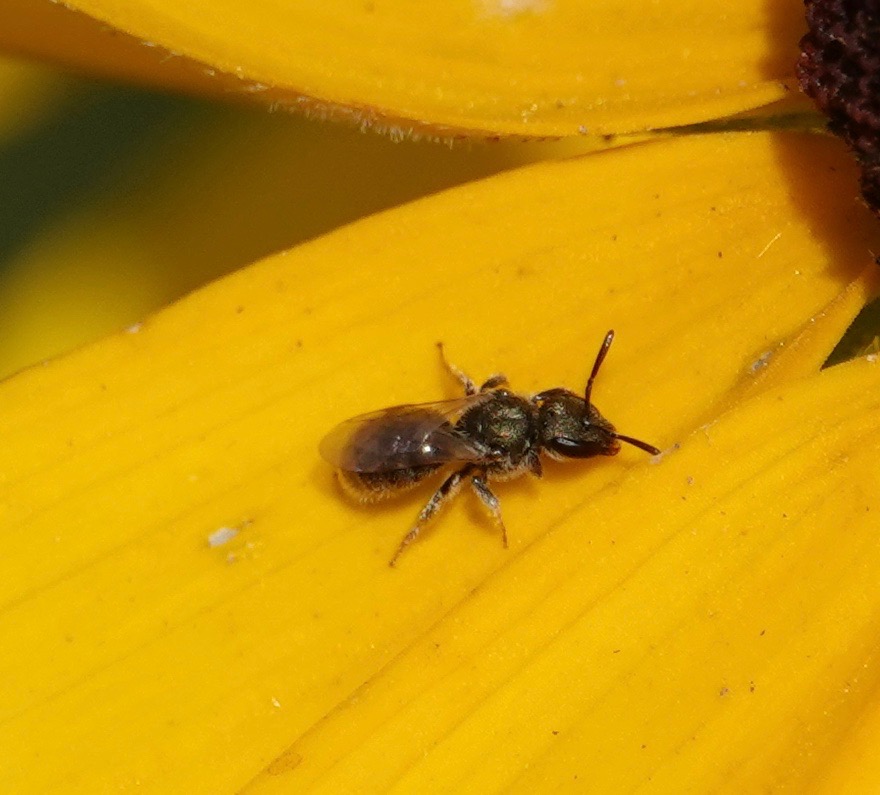 One of our smaller bees, about 5mm long: Dialictus subgenus of Lassioglossum.