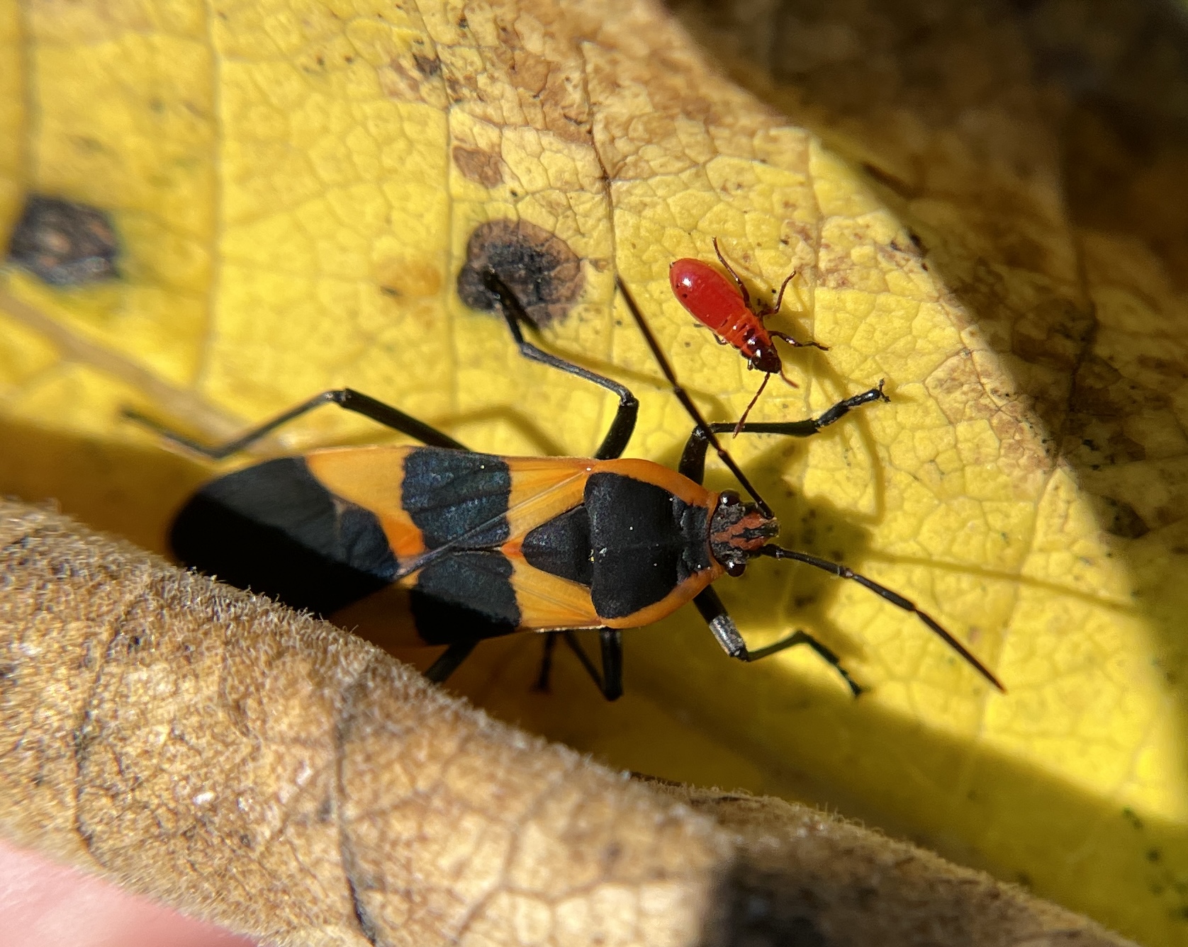 Large Milkweed Bug/Oncopeltus fasciatus, nymph and adult.