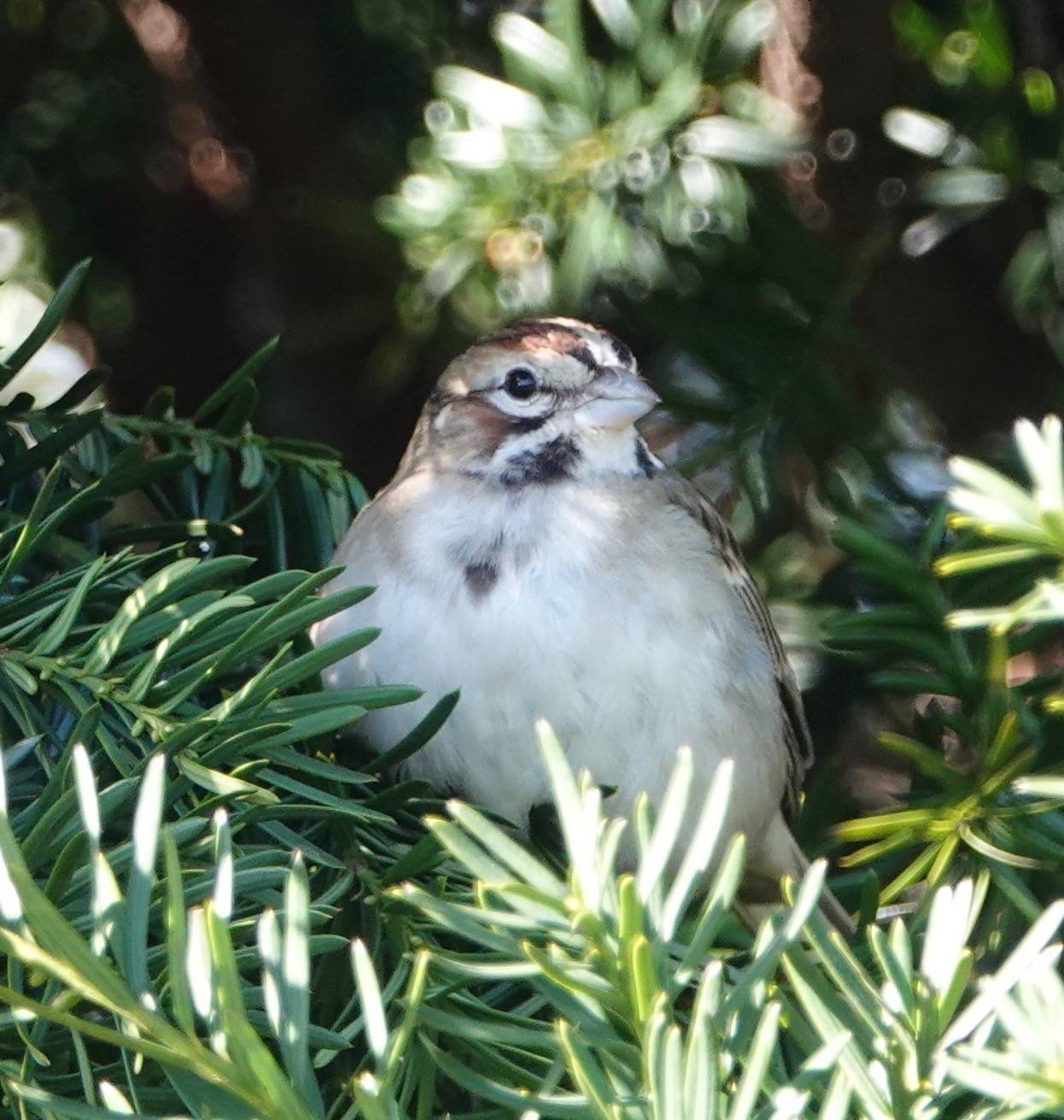 And a Lark Sparrow/Chondestes grammacus. First time I’ve seen any of these here in the cemetery. The Lark S was in the new meadow, which the legions trampled though like Visigoths.