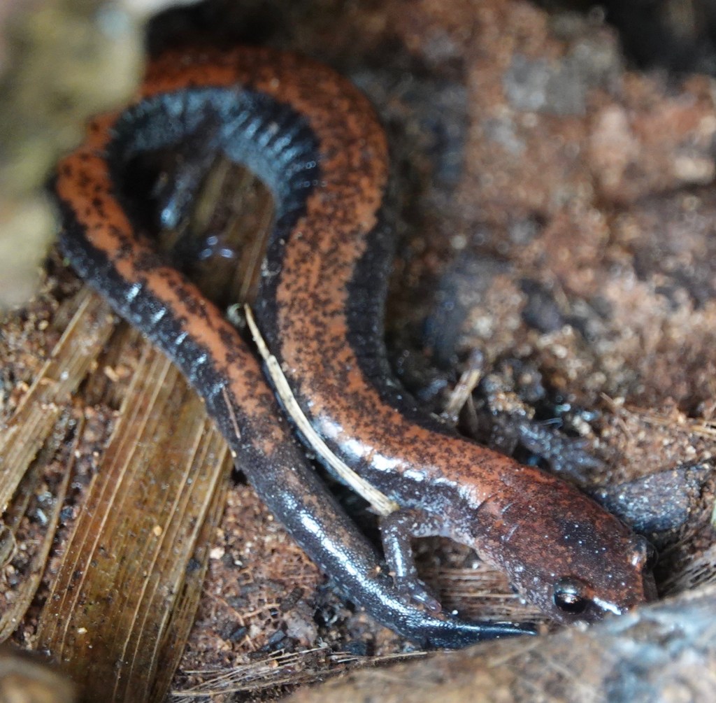 I spotted six Eastern Red-backed SalamandersPlethodon cinereus. And a couple of rove beetles, which might be trying to eat the salamanders or vice versa…?