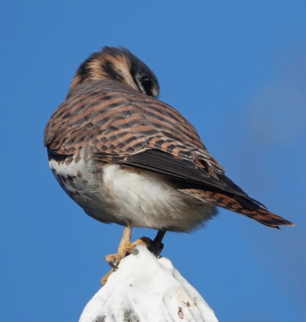 Female raptors are on average larger than males: Sibley has 4.1 oz for weigh for American Kestrel; Crossley gives range of 3.4-5.3 oz.
