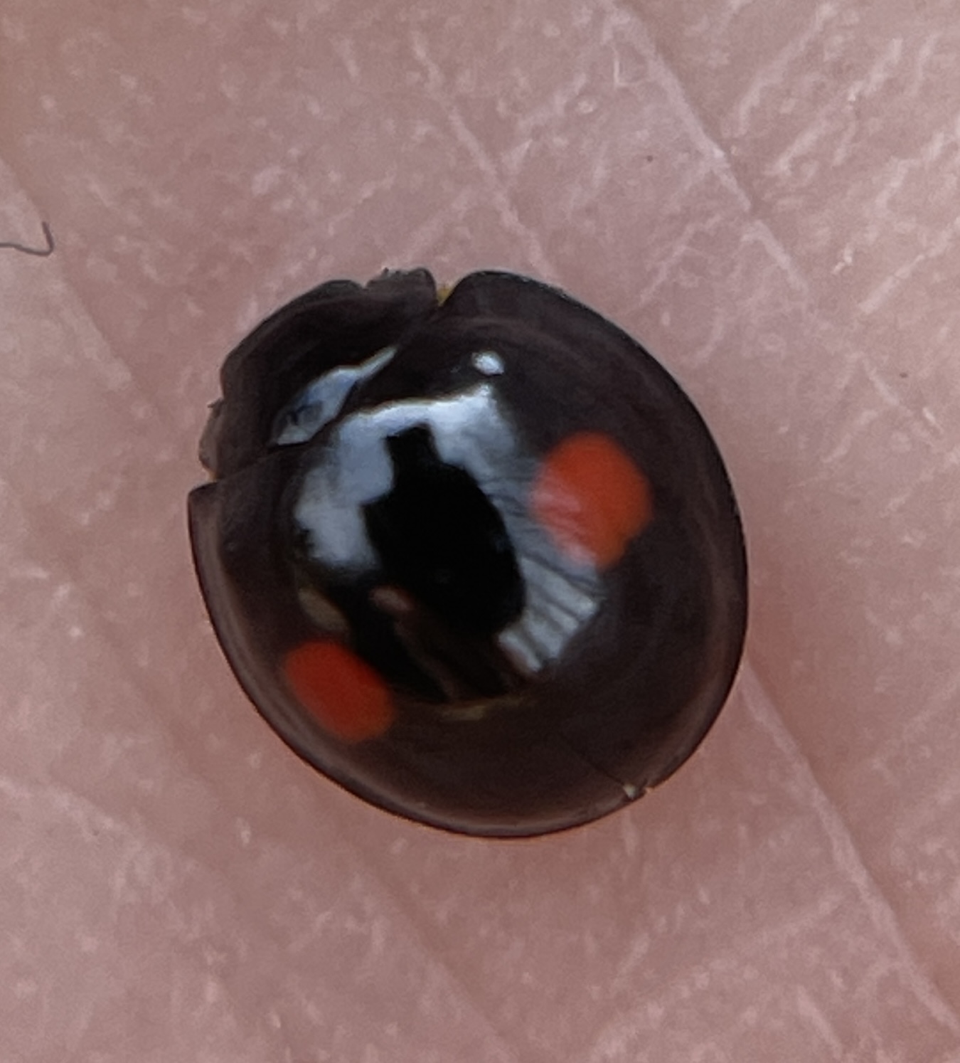 Ah, but which one? iNat’s robot ID fails in the case of all the black ladybugs with red spots. It suggests Chilocorus stigma for them all, which is plainly wrong, not least because they also include the Hyperaspis genus sigil lady beetles under this umbrella. Based on several characteristics, I think this is Kuwana’s Lady Beetle, Chilocorus kuwanae, an introduced species, but so far nobody has agreed or disagreed with me.