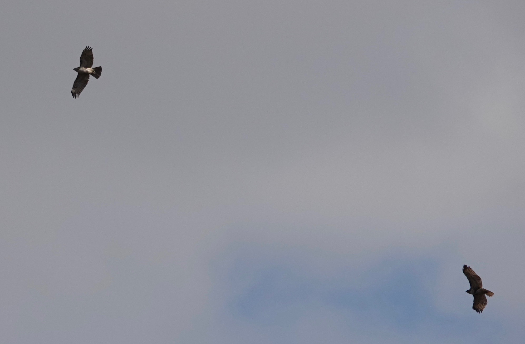 Two blocks out the door, I see three American Crows chasing a young Red-tailed Hawk. A couple more crows join in, but the hawk, probably the youngster frequently seen around Sunset Park this season, flies out of sight.