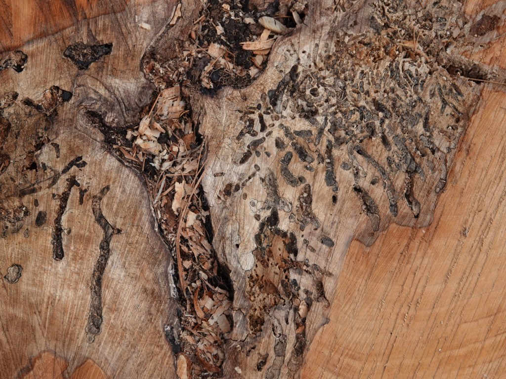 Somebody has been beetle-larvaing through the heartwood of this one.