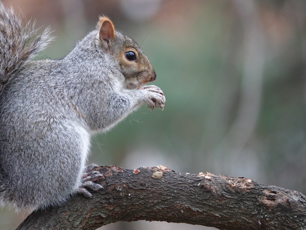 Squirrels in some city parks will come right up to you for food, but Green-Wood’s Eastern Grays are quite cautious. After all, you could be a Red-tailed Hawk. This one was planning the next move… that right front paw may have been in bad shape.
