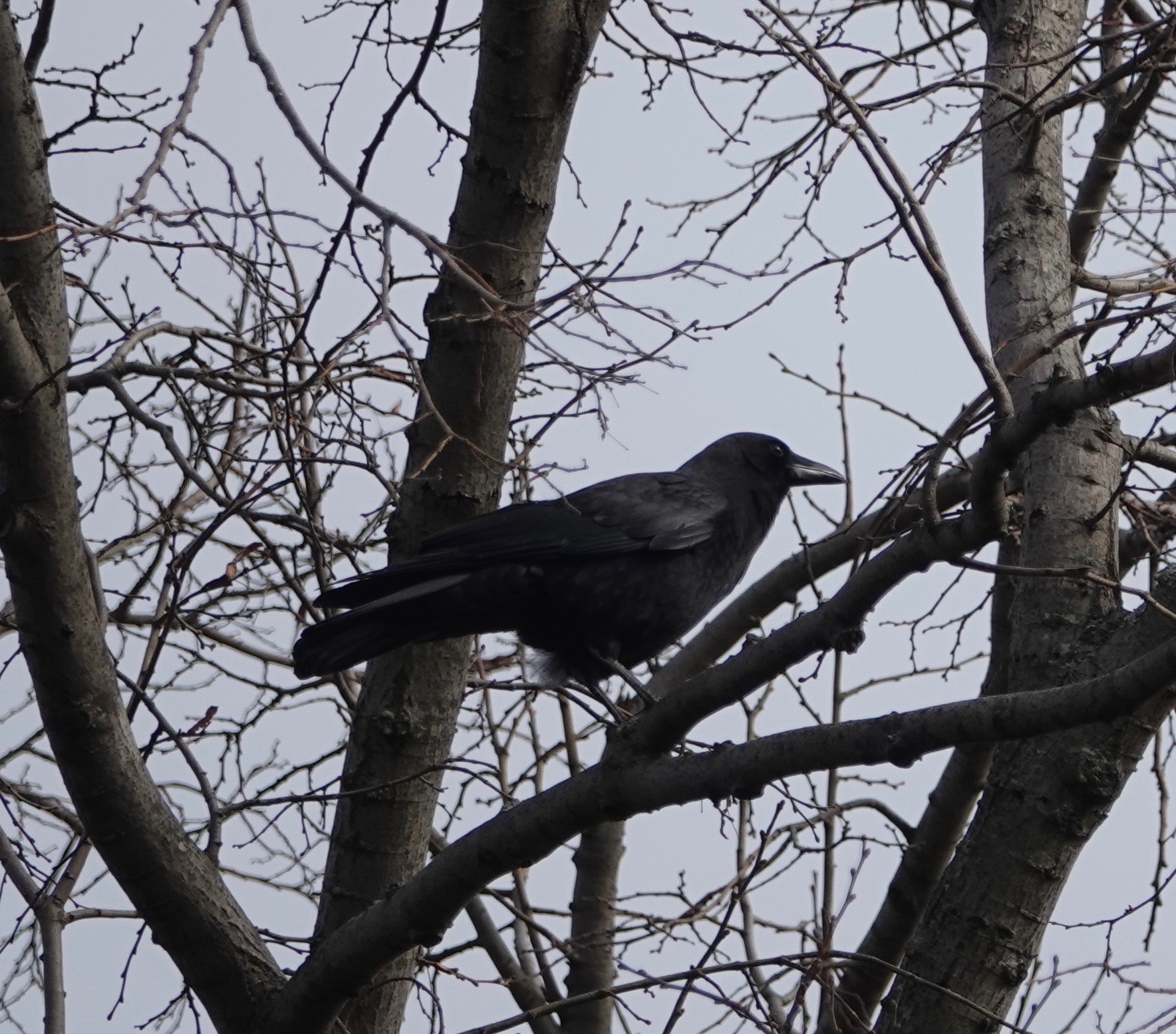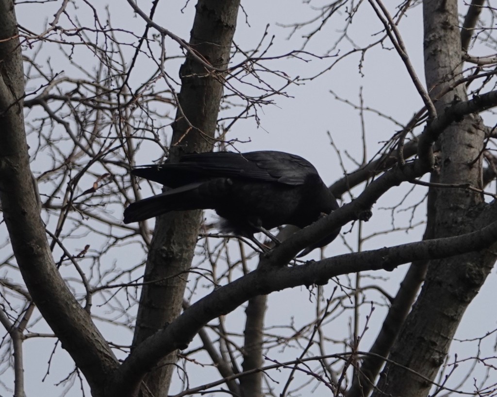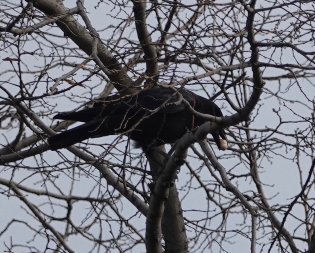 From far off, I thought this American Crow might have an egg, which seemed off for December.