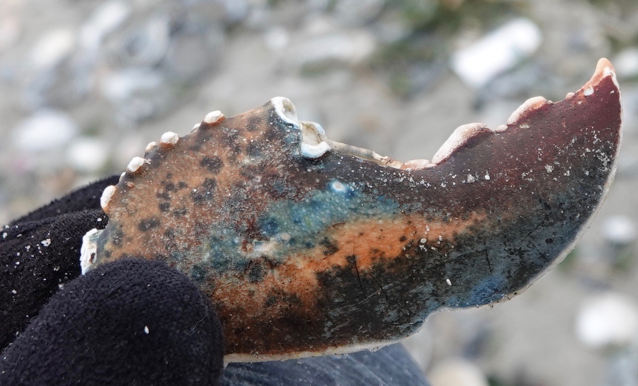 Washed ashore at Riis Beach: what I think is a Jonah Crab/Cancer borealis claw. About a week earlier, some very large waves were recorded in nearby NJ, so the storm must have really stirred up the bottom.