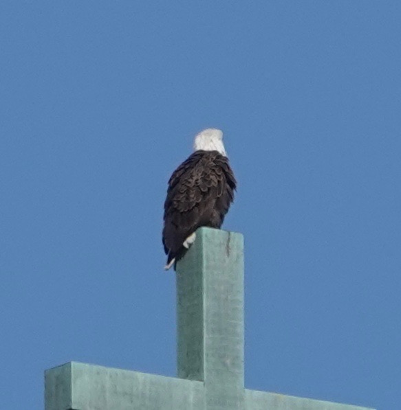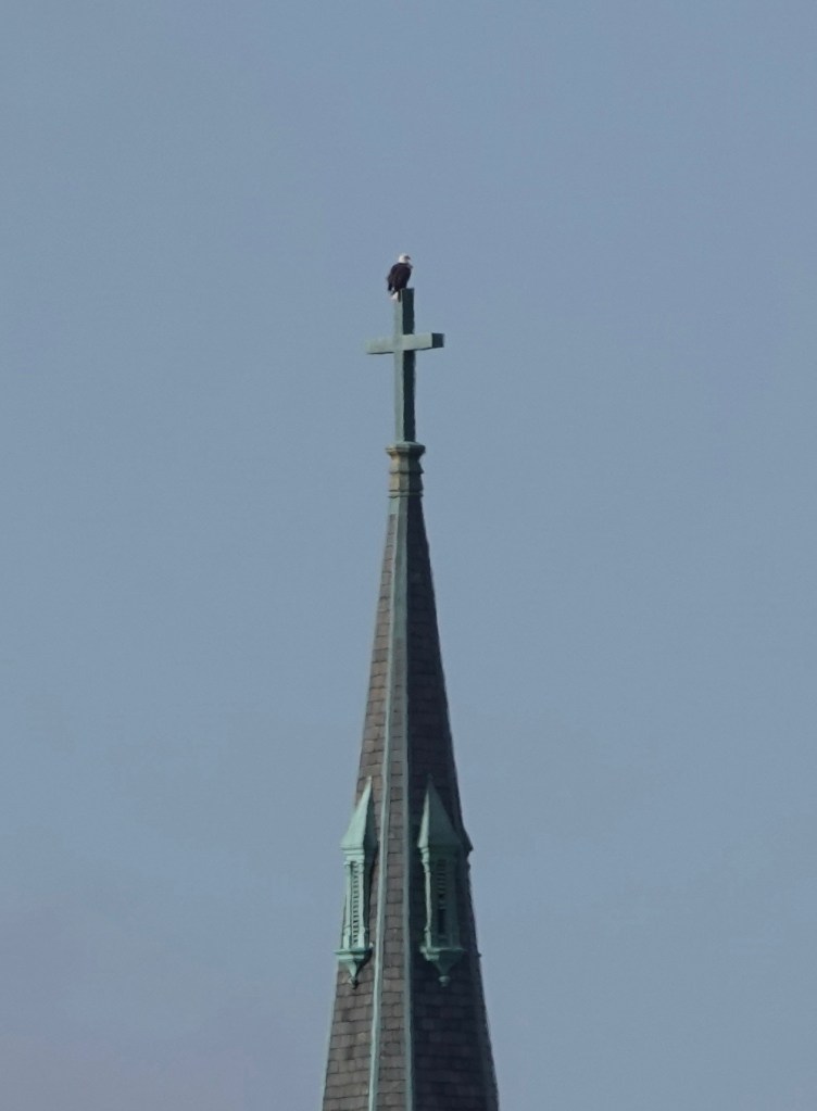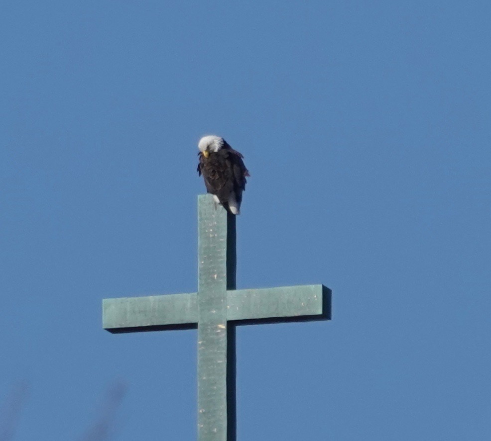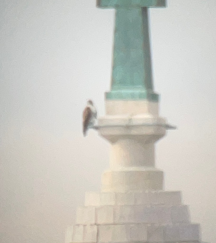 Back home, there was a Red-tailed Hawk atop Mike’s Spike: