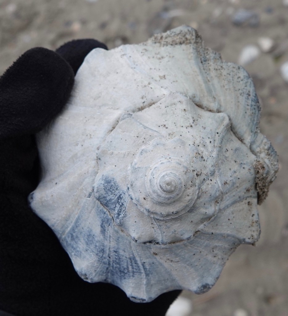 Knobbed Whelk/Busycon carica and Channeled Whelk/Busycotypus canaliculatus side-by-side. I usually see more Channeled around here, but