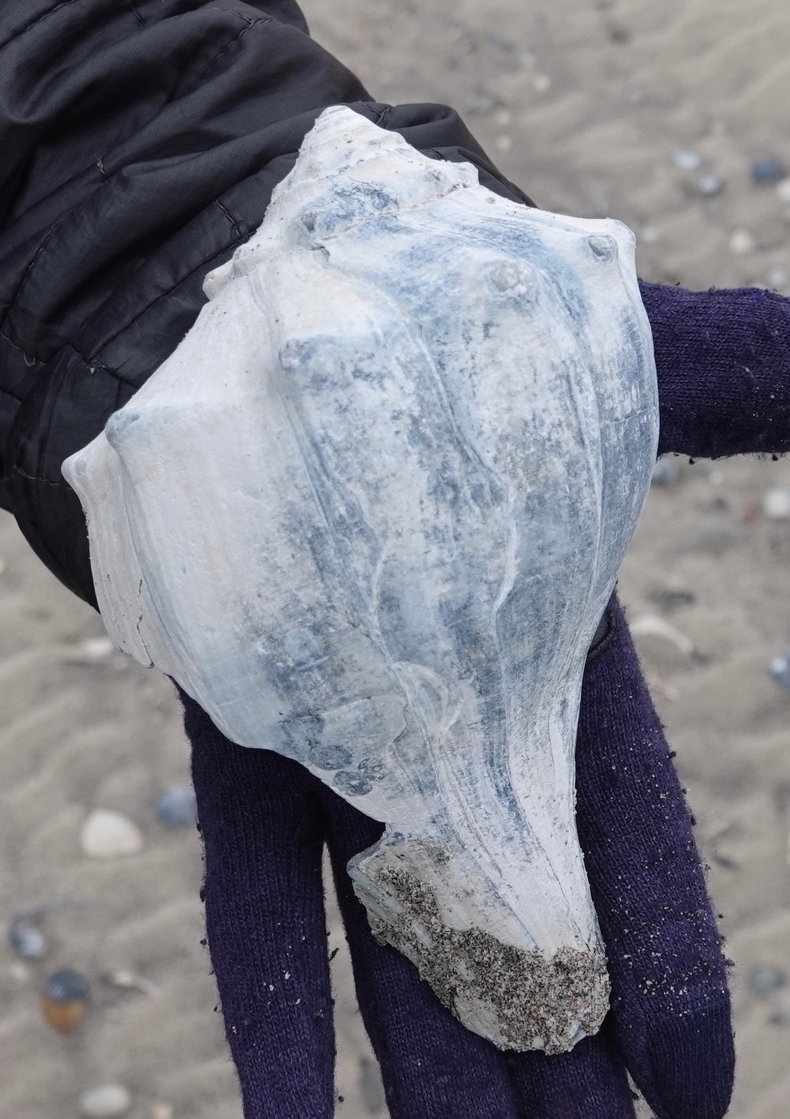 Knobbed Whelk/Busycon carica and Channeled Whelk/Busycotypus canaliculatus side-by-side. I usually see more Channeled around here, but