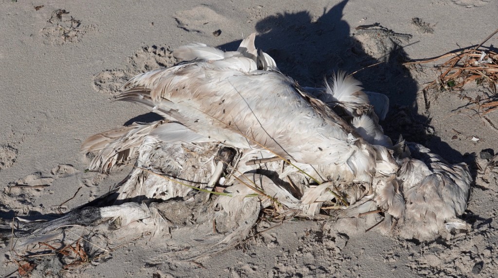 Getting to Plumb Beach, I walked along the Sheepshead Bay shore and saw more than a dozen live Mute Swans/Cygnus olor. This one didn’t make it.