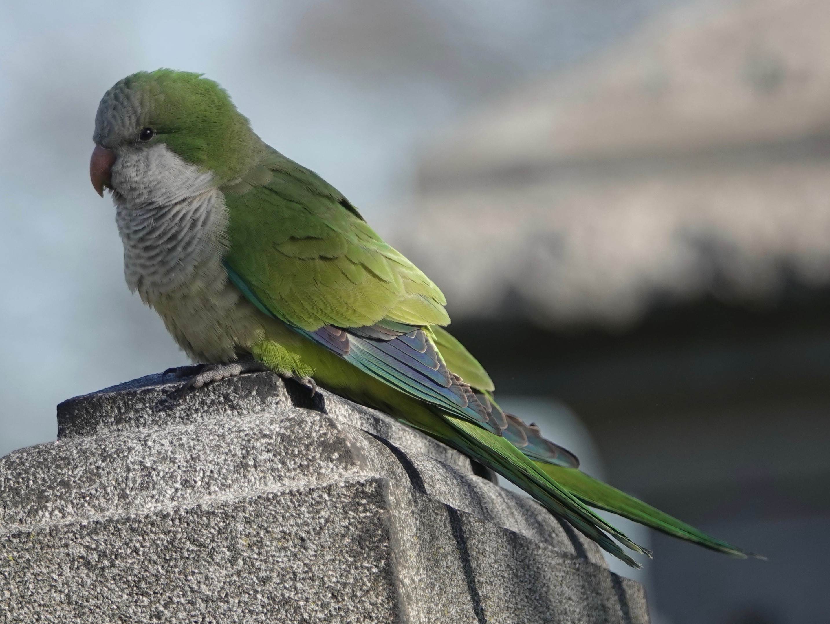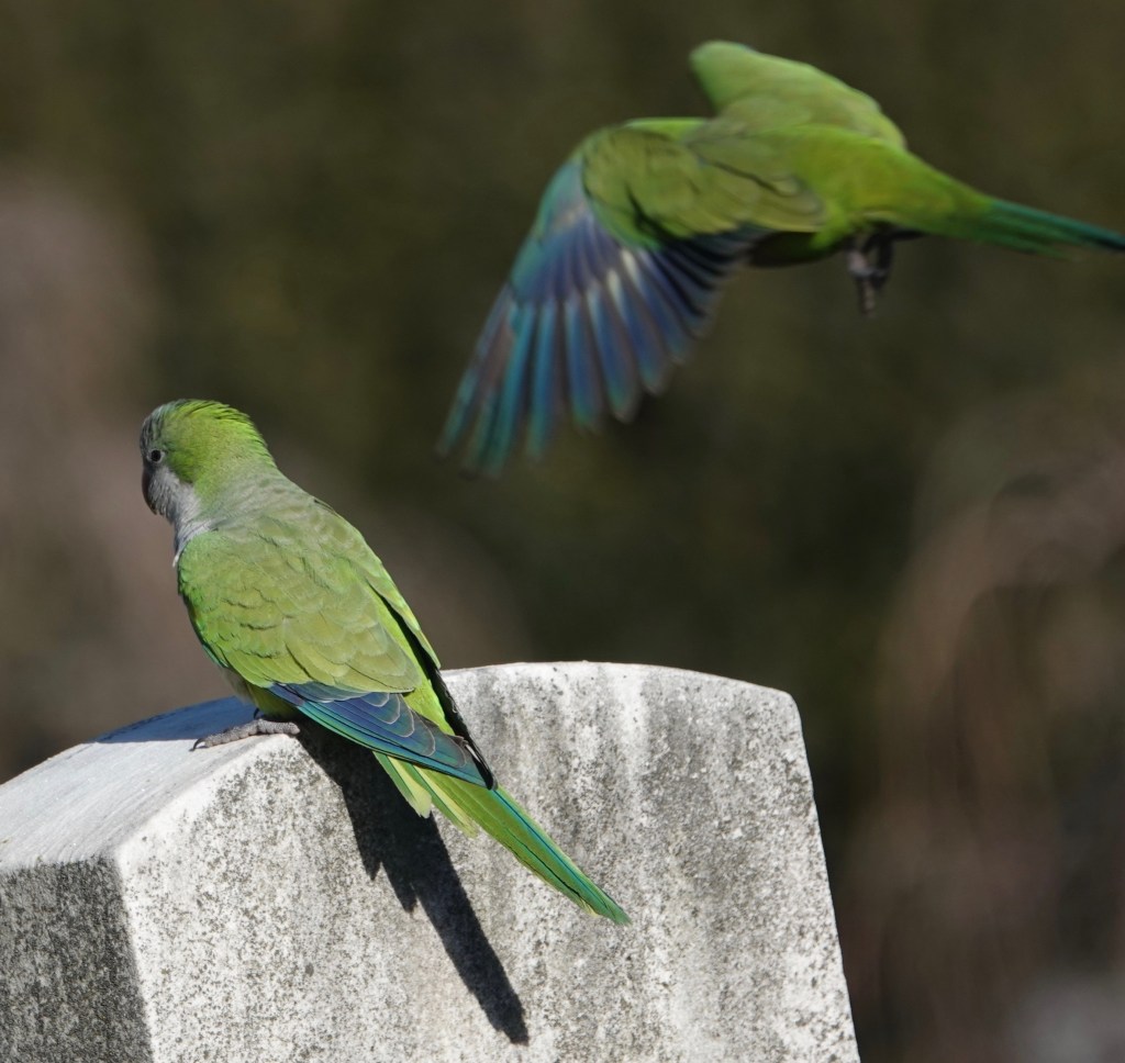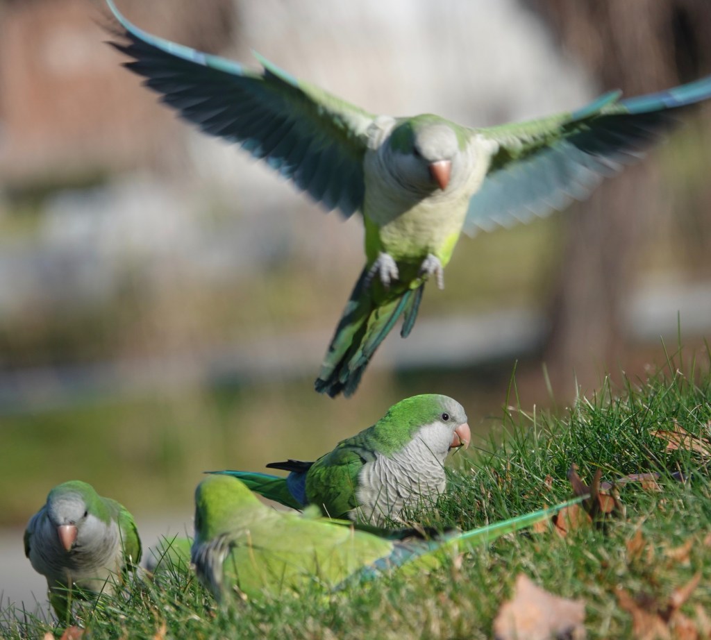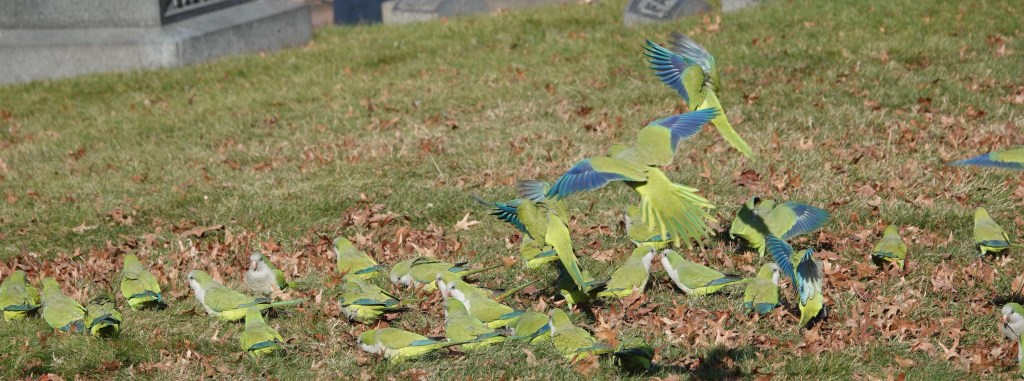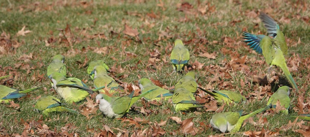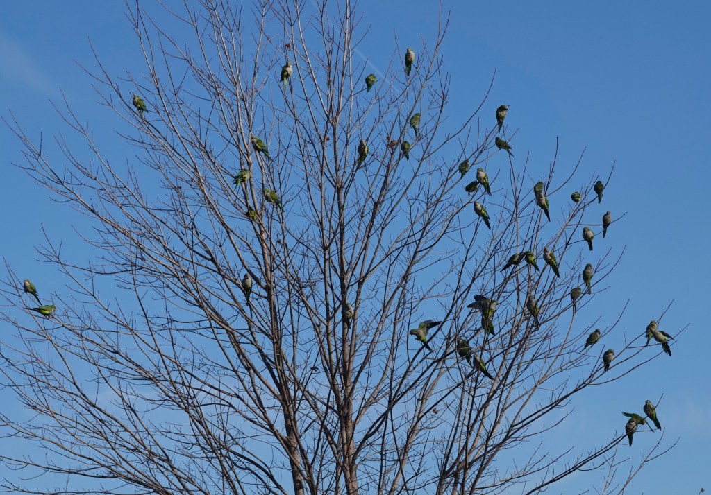 Parakeets, whatever. Forty-some of them anyway: Monk Parakeet/Myiopsitta monachuss.