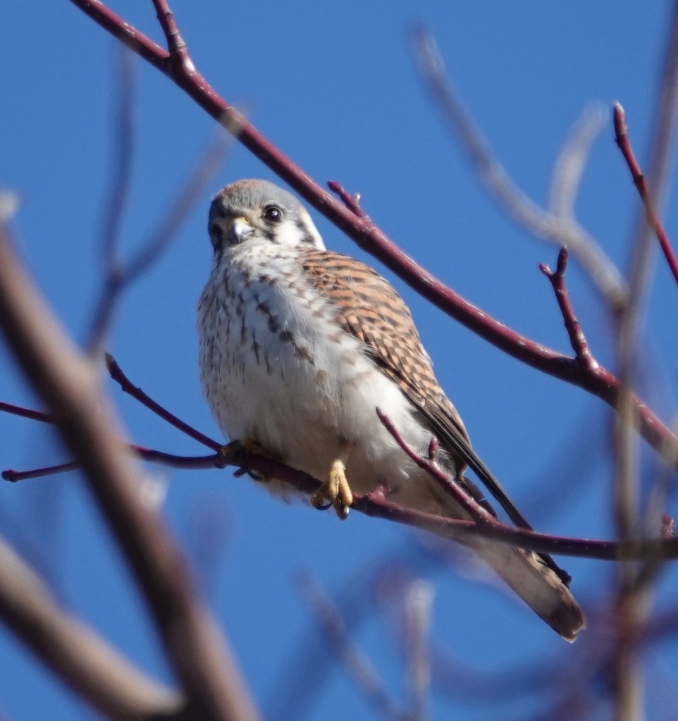A female American Kestrel, on her usual Chapel hunting grounds.