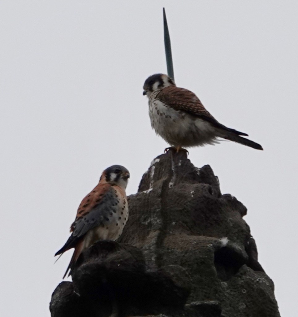Six days apart, a male and female American Kestrel atop the same building topper in Windsor Terrace. I suspect the potential of a breeding pair somewhere nearby.