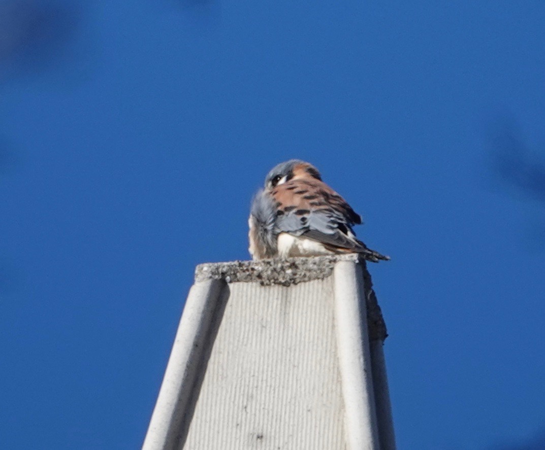 Six days apart, a male and female American Kestrel atop the same building topper in Windsor Terrace. I suspect the potential of a breeding pair somewhere nearby.