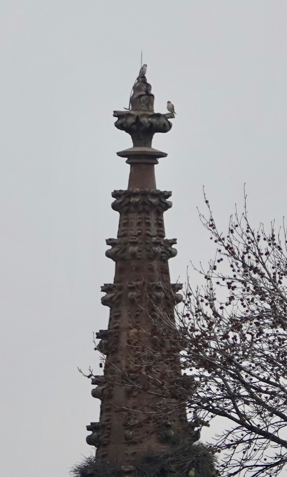 Forty minutes later, I was near Green-Wood’s 25th St entrance and saw a pair atop the Gothick pile: