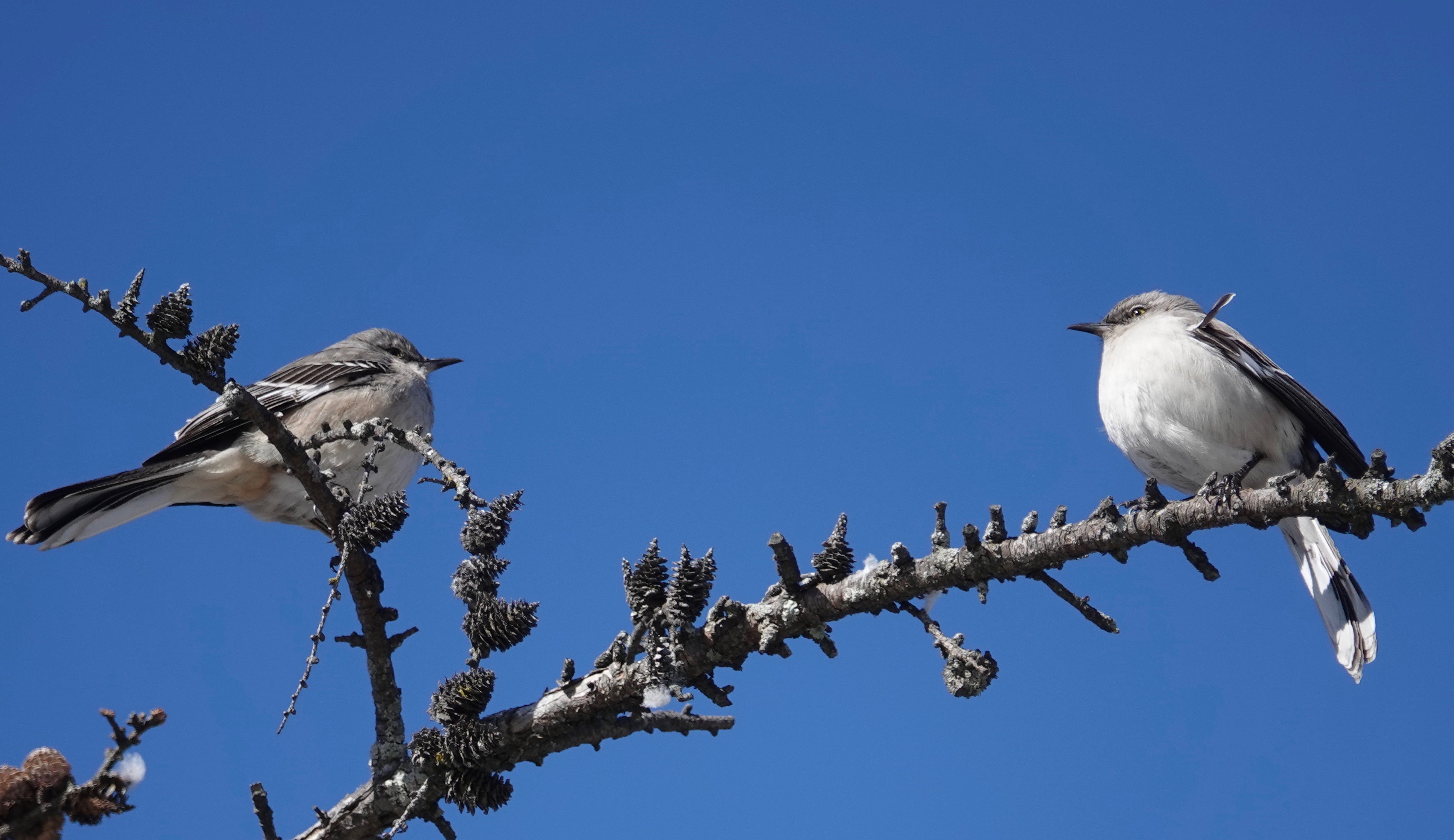 After a winter of chasing each other and everything else, are these Mockingbirds thinking of the spring?