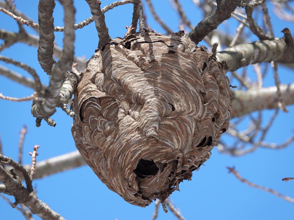 These Bald-faced Hornet nests usually don’t survive this far into winter. (There are no wasps in here; the community dies off in the fall, except for pregnant females, who burrow themselves elsewhere for the winter months.)