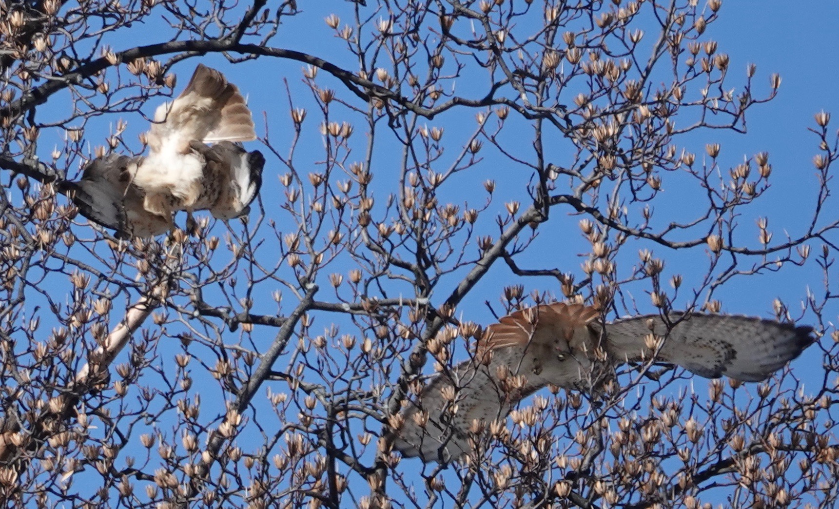 Love in a Tuliptree: Red-tailed Hawk copulation.