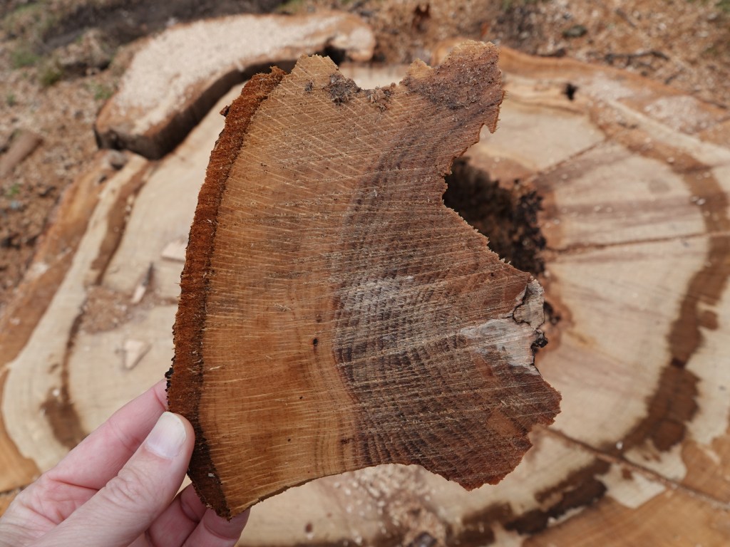 Sad. This was a mighty Quercus alba. Half way down the slope, so one of its branches nicely aligned with naturalist’s level at the top of the hill. I documented half a dozen gall wasp species on this grand old tree, plus handful of other lifeforms. That wasn’t even a drop in the bucket.