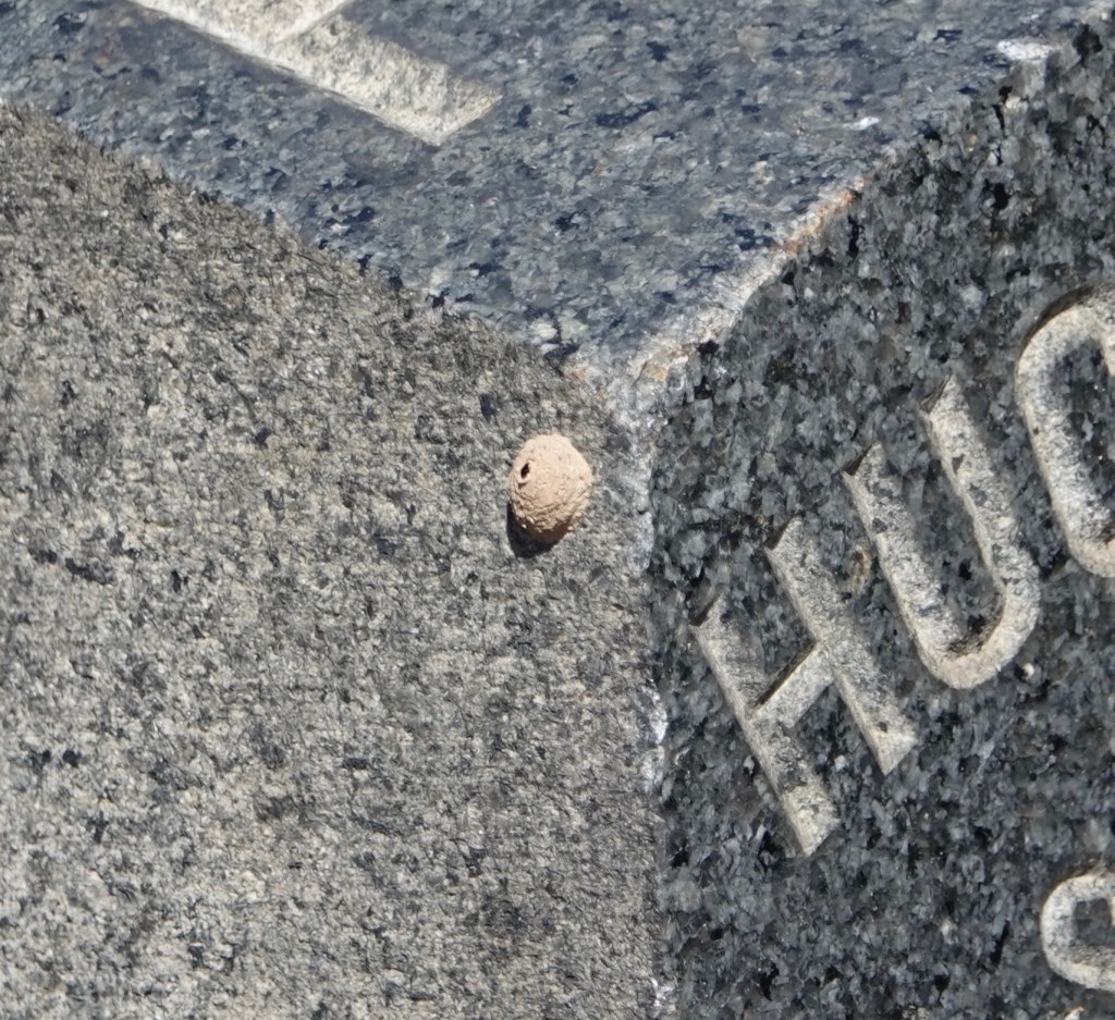 The mud nest of a potter wasp, probably of the Eumenes genus. It amazes me that this has withstood this winter’s ample rain.