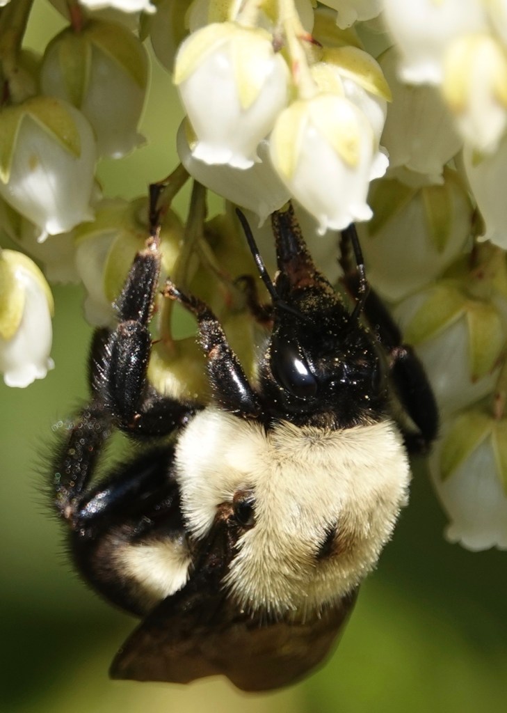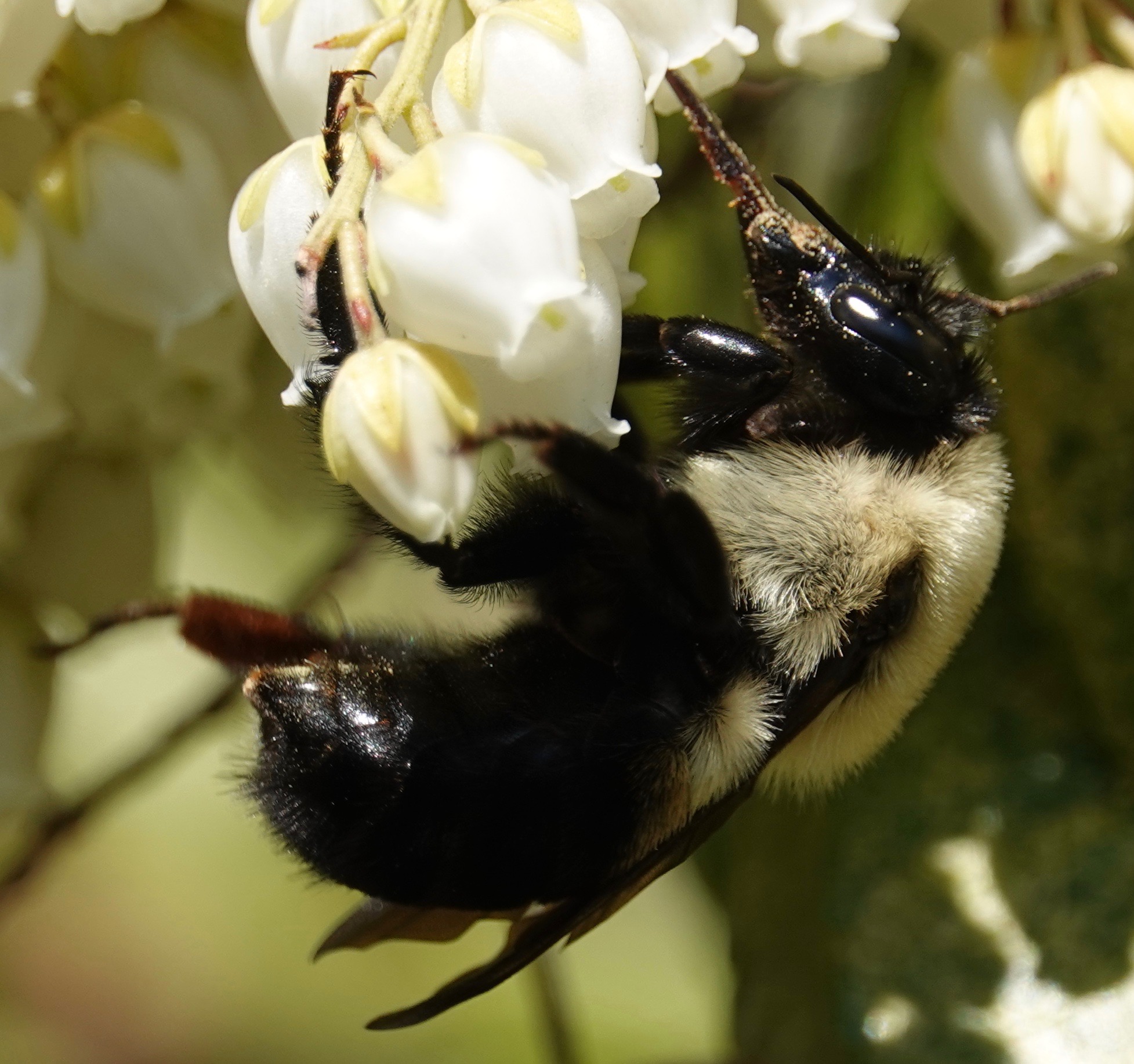 Suddenly last Thursday it warmed up and up. The bees started to emerge. This Brown-belted Bumble was going after the nectar of Japanese Andromeda.