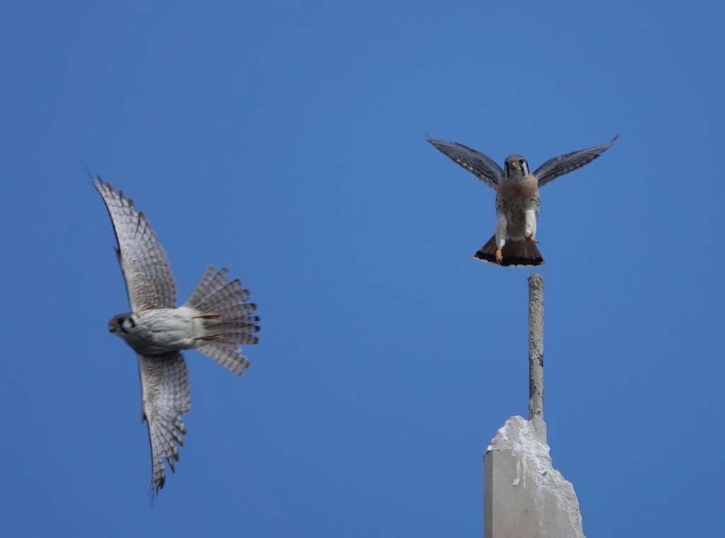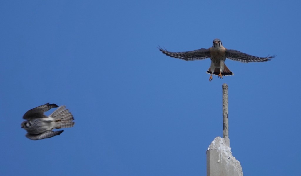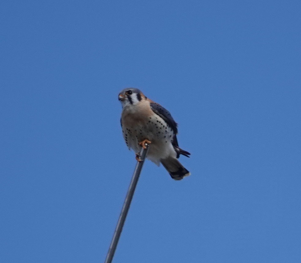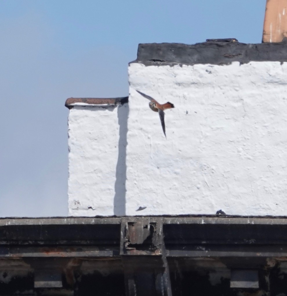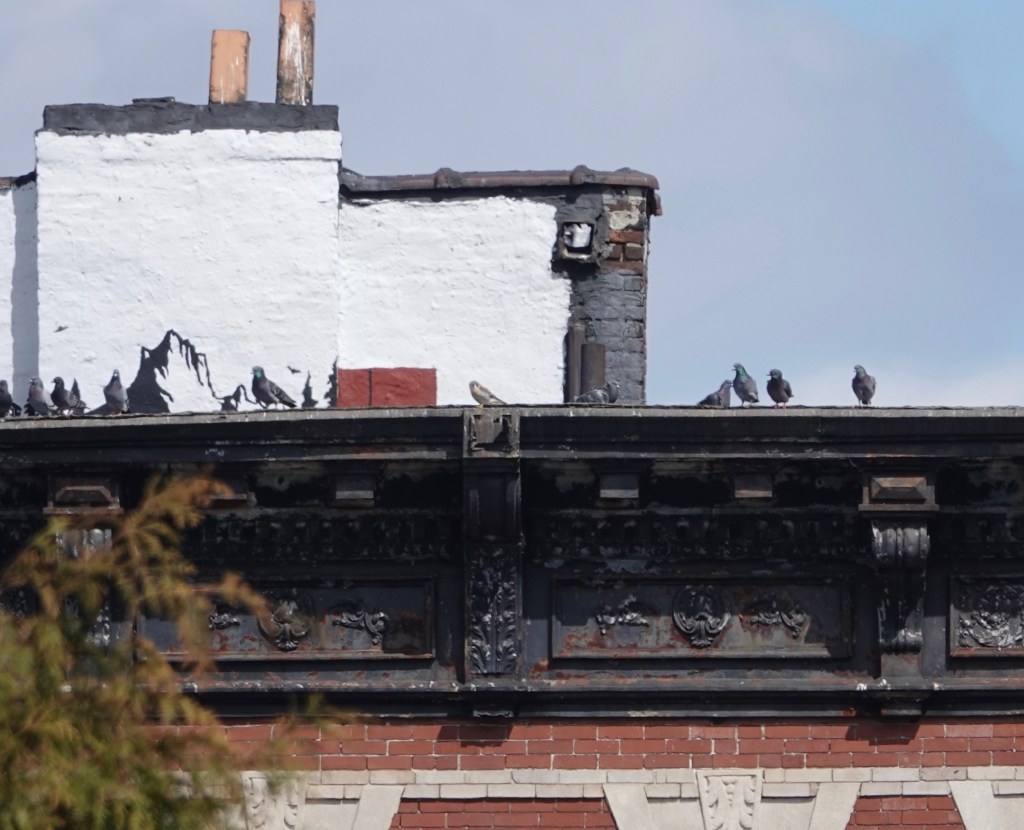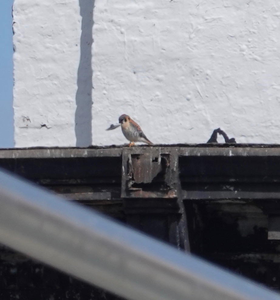 Walking by the kestrel copulation building looking for little falcons and holes and cornices. Nothing from across the street.