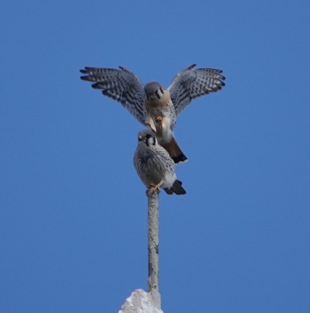Note, by the way, how he balls up his feet so his talons don’t damage her feathers/back.