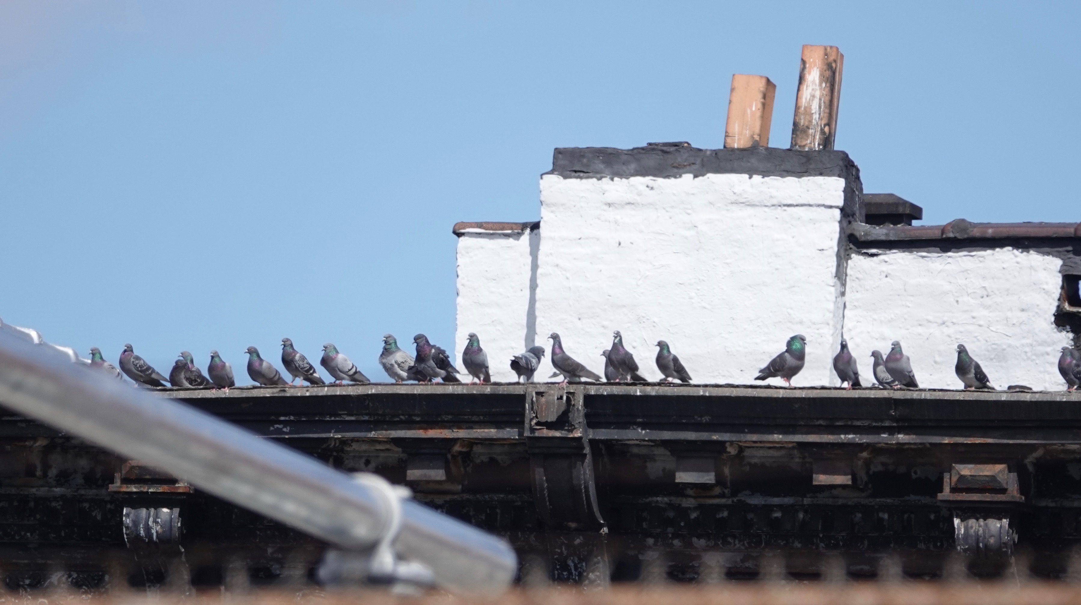 Walking by the kestrel copulation building looking for little falcons and holes and cornices. Nothing from across the street.