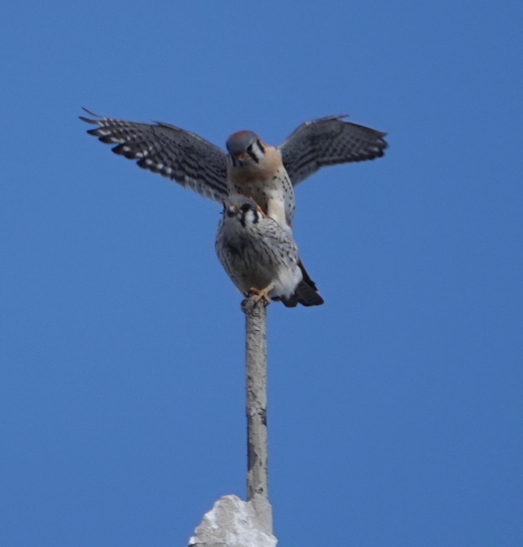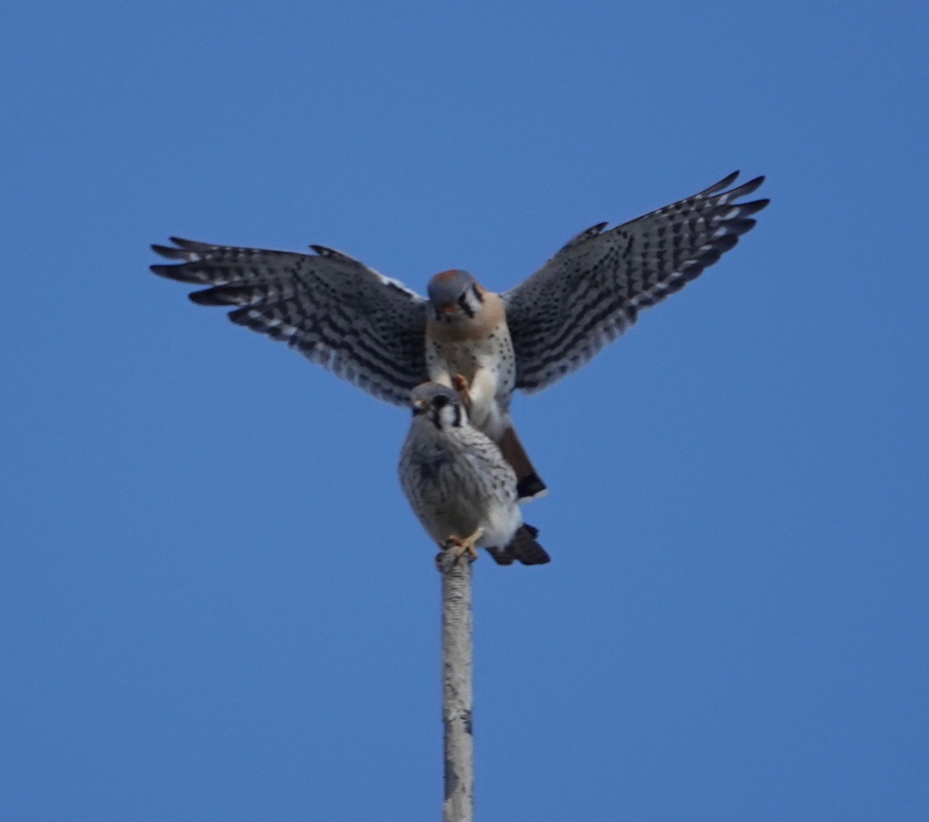 Note, by the way, how he balls up his feet so his talons don’t damage her feathers/back.