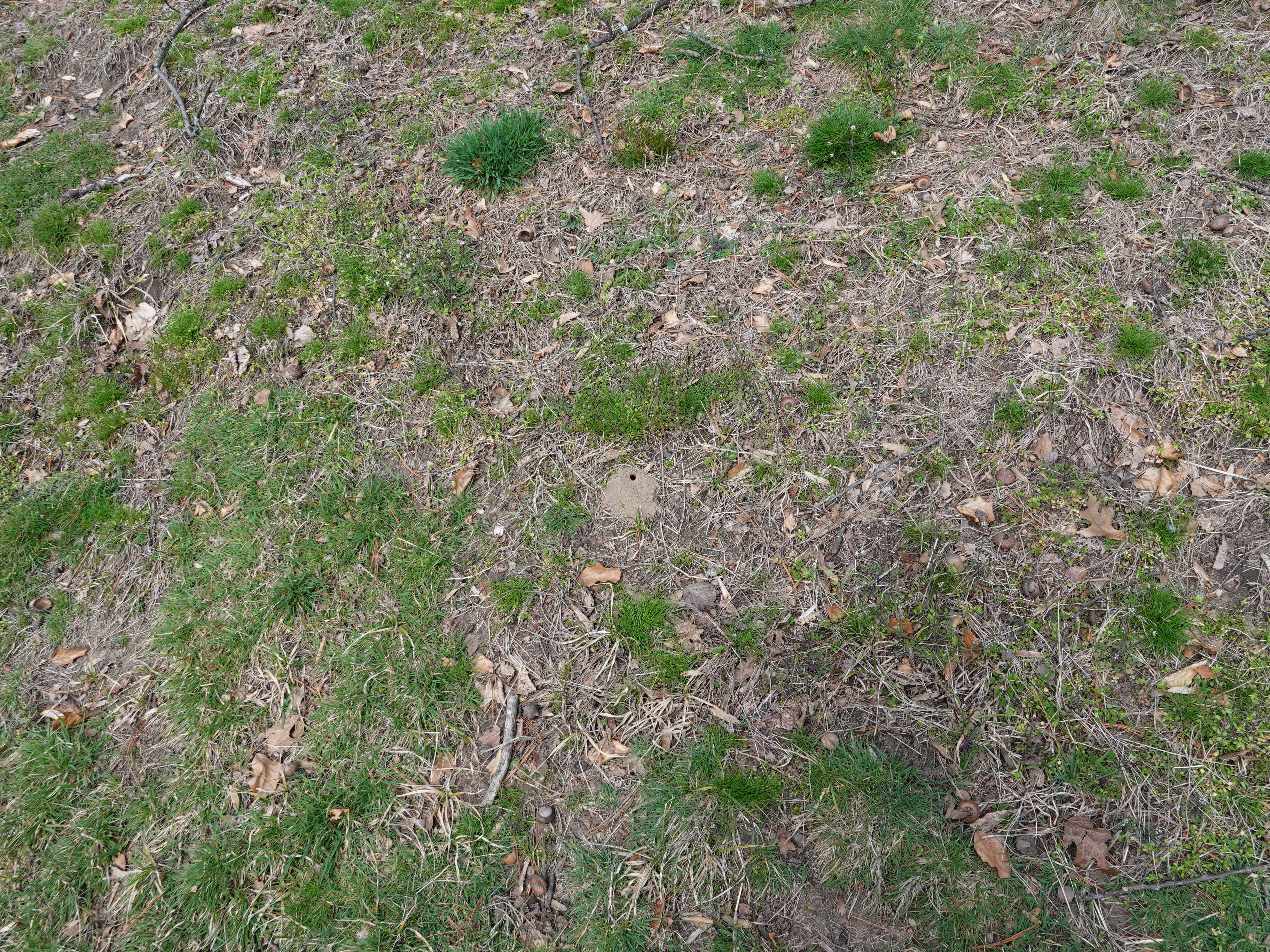 A south-facing slope with open patches of dirt. Look closer…