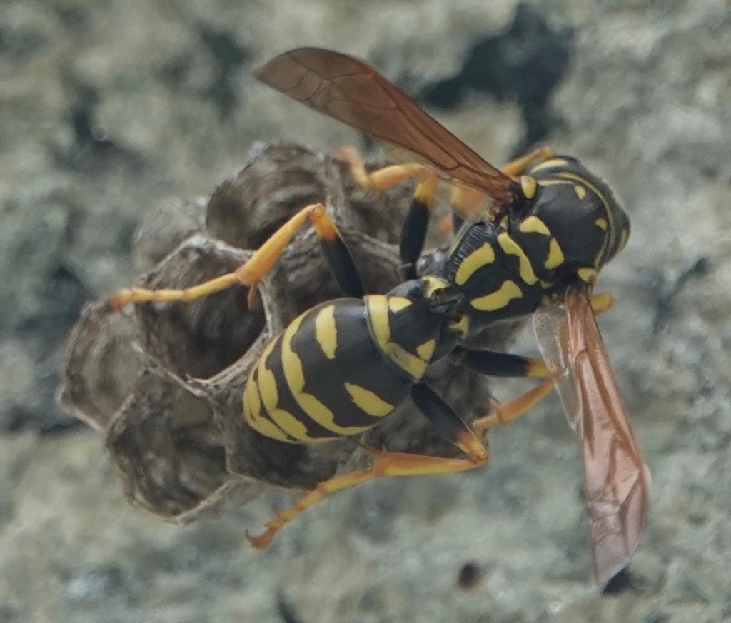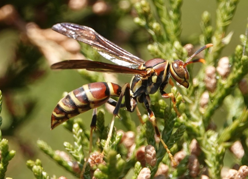 Another Polistes paper wasp, and the most vibrantly colorful one seen in these parts: P. exclamans.
